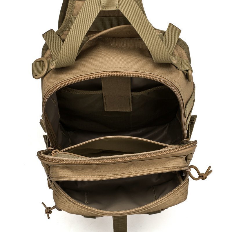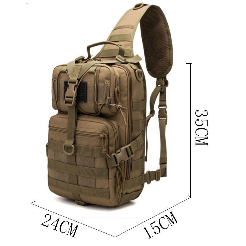 採寸は下記通りです、ご参考ください。サイズ cm横25×縦35×マチ14素材: 800dポリエステル仕様大口×1 ダブルジッパー前面 ジッパー式ポケット×3後面 ボタン式ポケット×1内部 オープンポケット×3手持ちハンドル×1D缶フック×5カードスロット×2ベルクロテープドローコー
