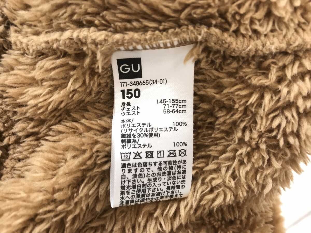 サイズは150でウエスト52-90cm、股上28cm、股下60cm、着丈55cm、身幅51cm、袖丈44cm です。