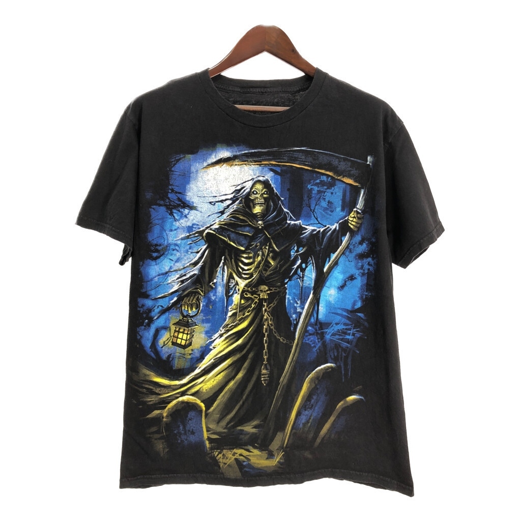 | 【商品管理番号】 T6707 【サイズ】 M相当 【実寸サイズ】 肩幅:約51cm 着丈:約71cm 身幅:約53cm 袖丈:約20cm 【主な素材】 表地 : コットン 【色】 ブラック 【仕様】 スカル 死神 【状態】 特記事項:色褪せ、毛羽立ち | |||
