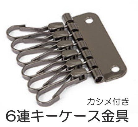6連 キーホルダー金具 ブラック レザークラフト 部品 道具 カシメ付き