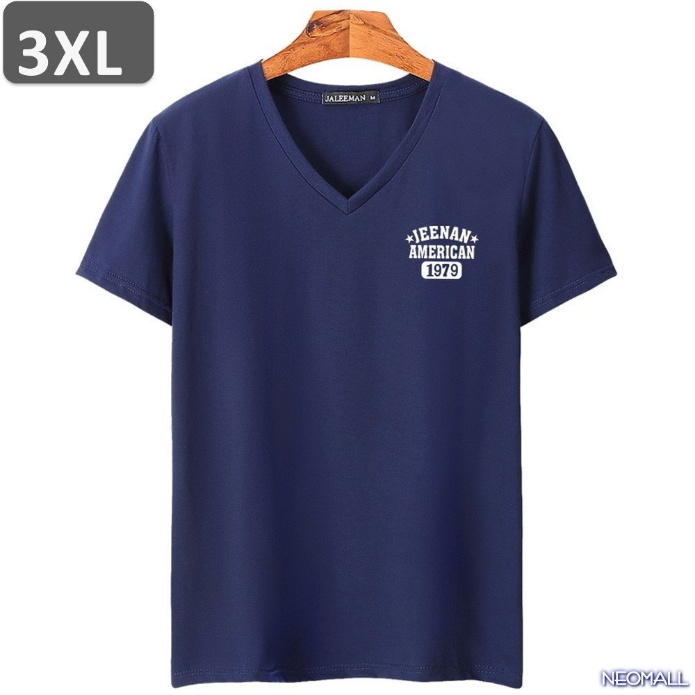 夏にピッタリ ☆ Vネック 半袖 Tシャツ【453】 ネイビー 3XLサイズ トップス シャツ シンプル イラスト デザイン 春夏