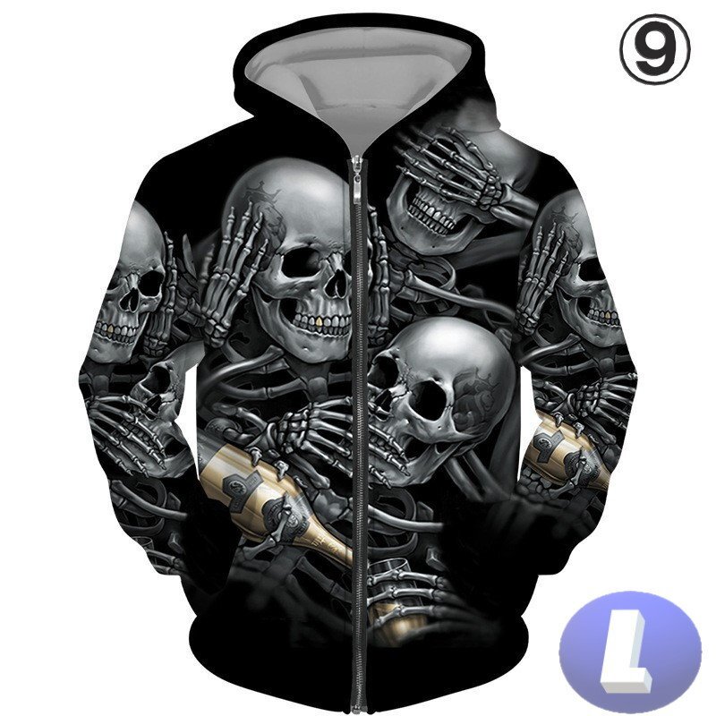 フード付き ドクロパーカー ジップアップ カラー9 L トレーナー アウター 防寒 n717