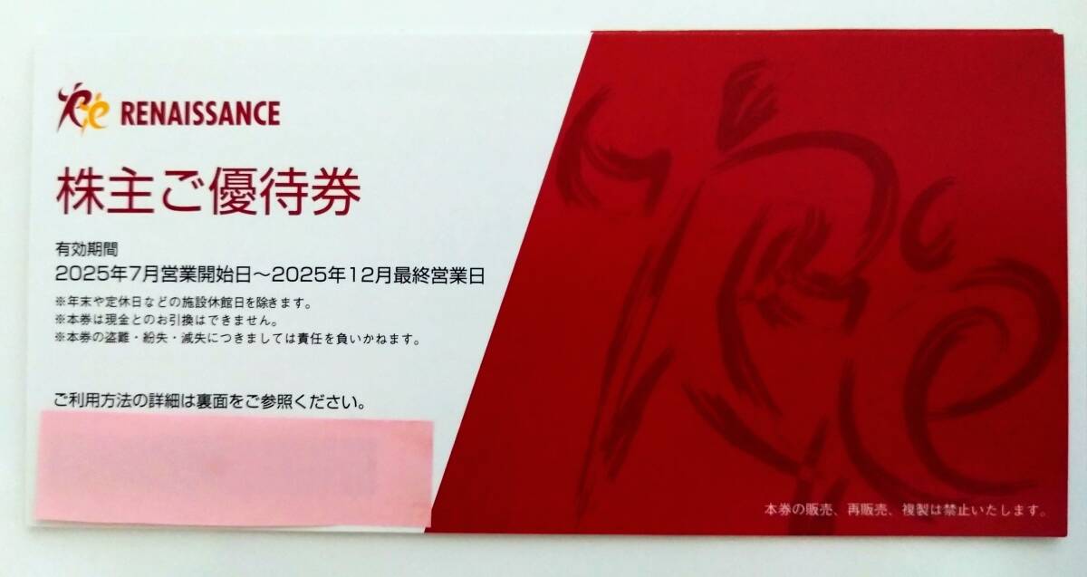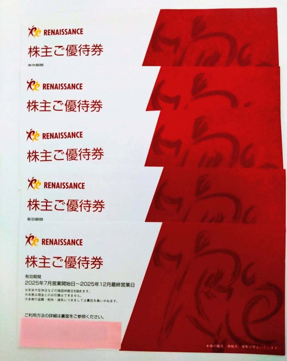 ルネサンス 株主優待券  5枚 (有効期限 2025年12月最終営業日)