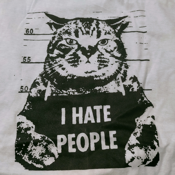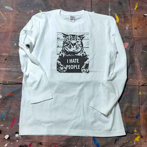 送料無料/ロンT【I HATE PEOPLE】猫マグショット / ホワイト★選べる3サイズ/M L XLサイズ/ヘビーウェイト 5.6オンス