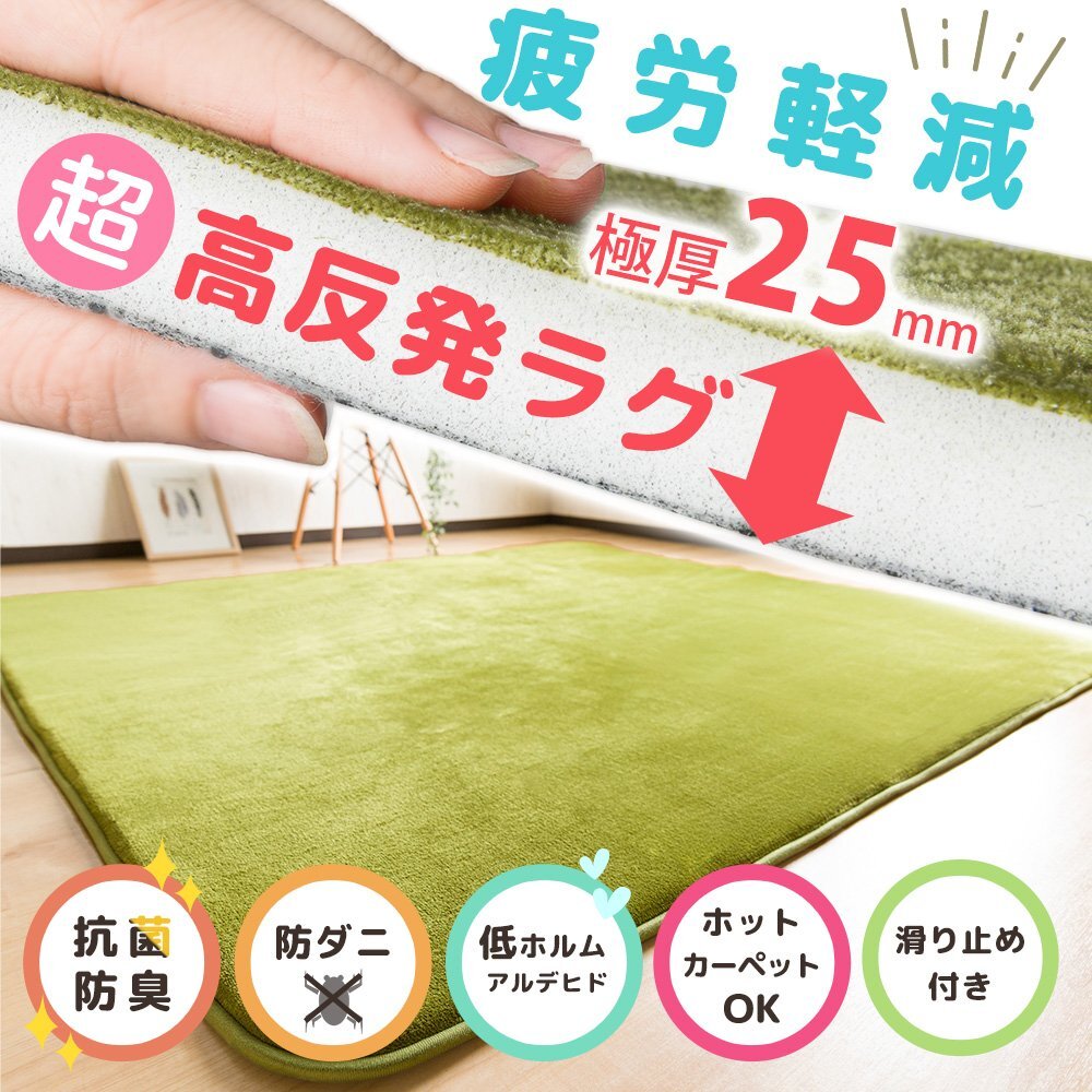 ラグマット ラグ カーペット 高反発 厚さ2cm 防ダニ 抗菌防臭 洗える 250×200cm 3畳 三畳 長方形 フランネルラグ