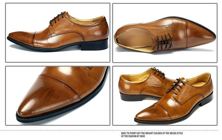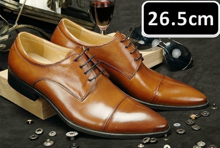 メンズ ビジネス レザー シューズ 本革 紐 ライトブラウン サイズ 26.5cm 革靴 靴 カジュアル 屈曲性 通勤 軽量 新品 【apa-163】