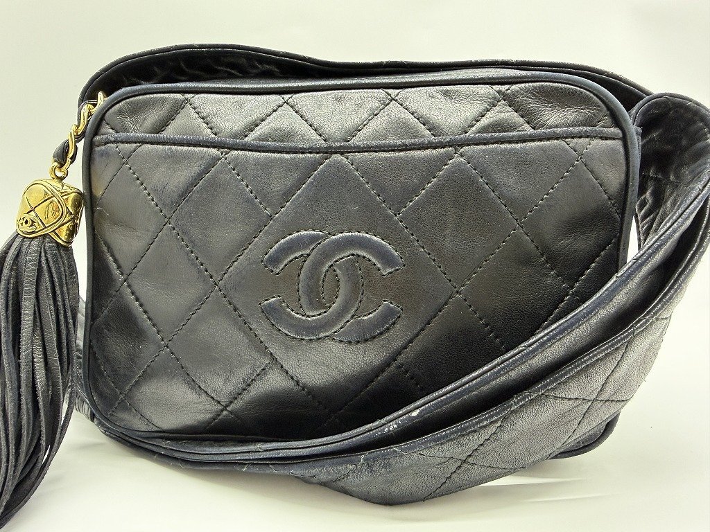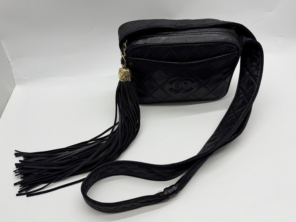 ■超希少【CHANEL シャネル ブラック ラムスキン マトラッセ ココマーク フリンジ ゴールドマトチェーン ミニ ショルダーバッグ】SH-21283