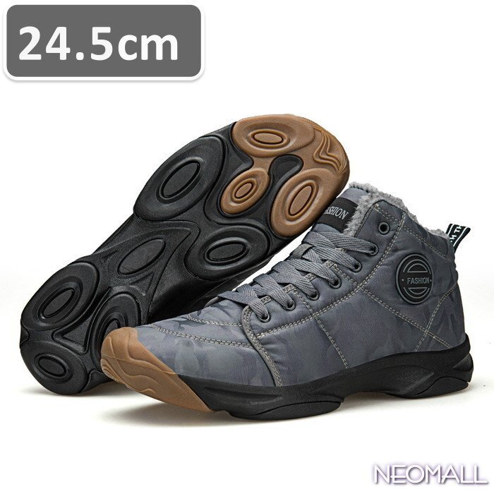 メンズ スノーシューズ 【864】 24.5cm 迷彩グレー ムートンブーツ スニーカー ウィンターブーツ 裏起毛 防水 防寒 防滑 冬用靴 綿靴