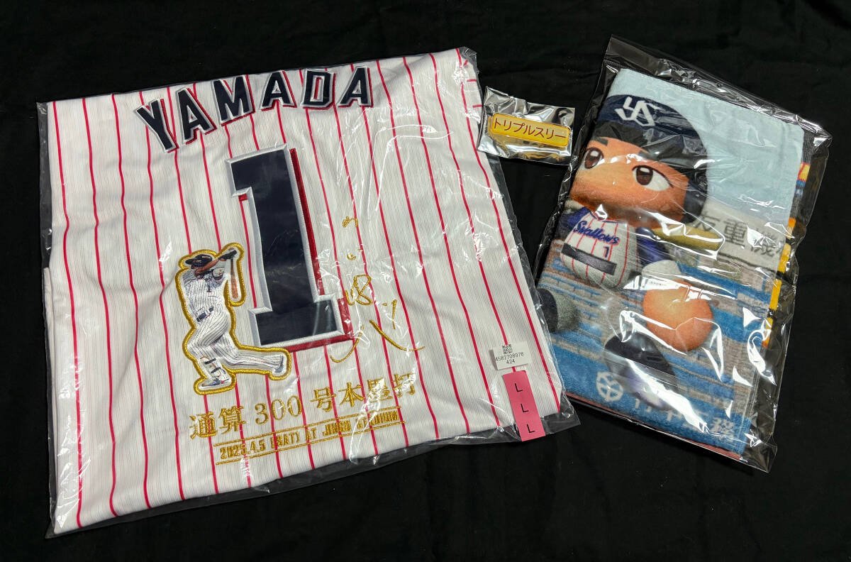 通算300号ホームランを記念したユニホーム。 カバー付きミラー、パワフルプロ野球とのコラボタオル、クリッキーです。 ユニホーム:Lサイズ
