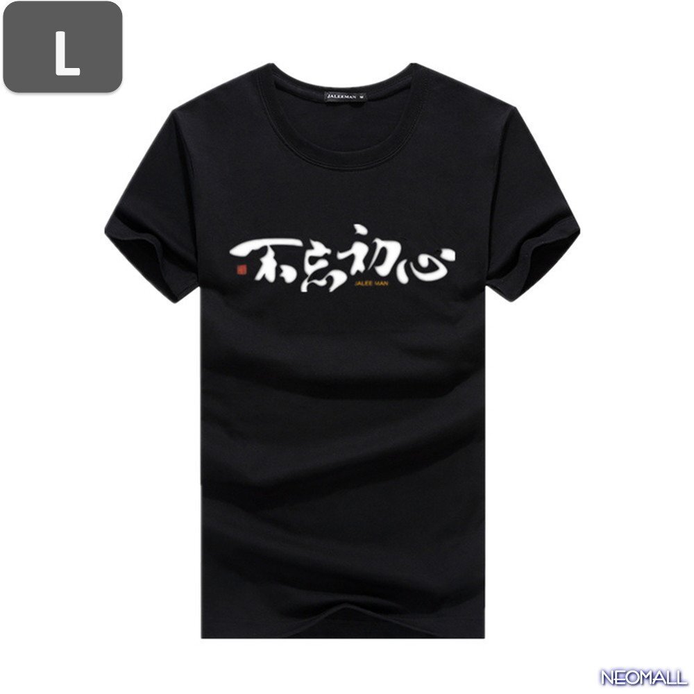 夏の定番 ☆ 丸首 半袖 Tシャツ【463】 ブラック Lサイズ トップス シャツ シンプル イラスト デザイン 春夏