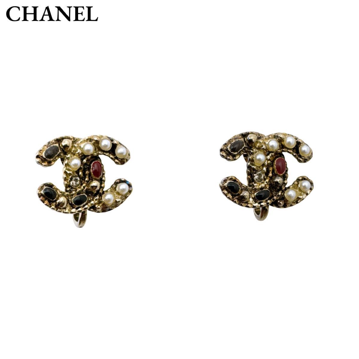 CHANEL シャネル ココマーク イヤリング アクセサリー 11A GP フェイクパール カラーストーン ゴールド レディース