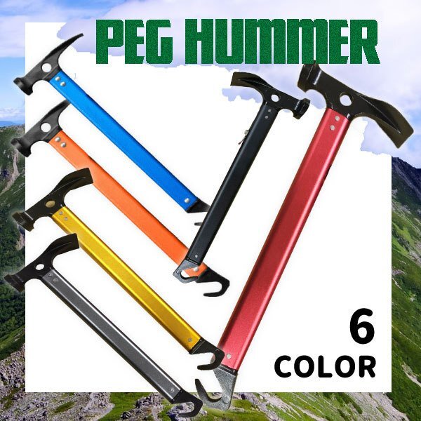 | ☆選べるカラー スチールペグハンマー ※オーダーフォームにご希望の以下のカラーを1つご入力ください。 オレンジ, ゴールド, レッド, ブルー, ブラック ダークグレー:在庫切れ 【商品名】 スチールペグハンマー 【本体仕様】 ◆サイズ:約28cmx11cm 打撃部分:約2.8cm ◆重さ:約360g 【おすすめポイント】 ◆高炭素鋼とアルミニウム合金の素材を活かした、軽量、衝撃吸収が特徴のスチールハンマー。 ◆ストラップ(ハンドロープ)を手首に通して作業することで、怖いスっぽ抜けを防止してくれます。 ◆腐食や磨耗にも強く、耐久性があります。 ◆先端部にペグ抜きの際に便利な穴や突起を完備。楽にテントを片付けられます。 ◆約360gと軽量で女性でも扱いやすく、疲れにくいペグハンマーで登山やツーリングキャンプに適した軽量型のペグハンマーです | ||||