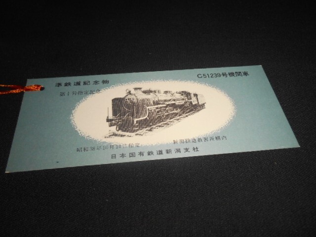 国鉄新潟支社 準鉄道記念物 C51233号 第1号指定記念 記念券 昭和38年 送料110円
