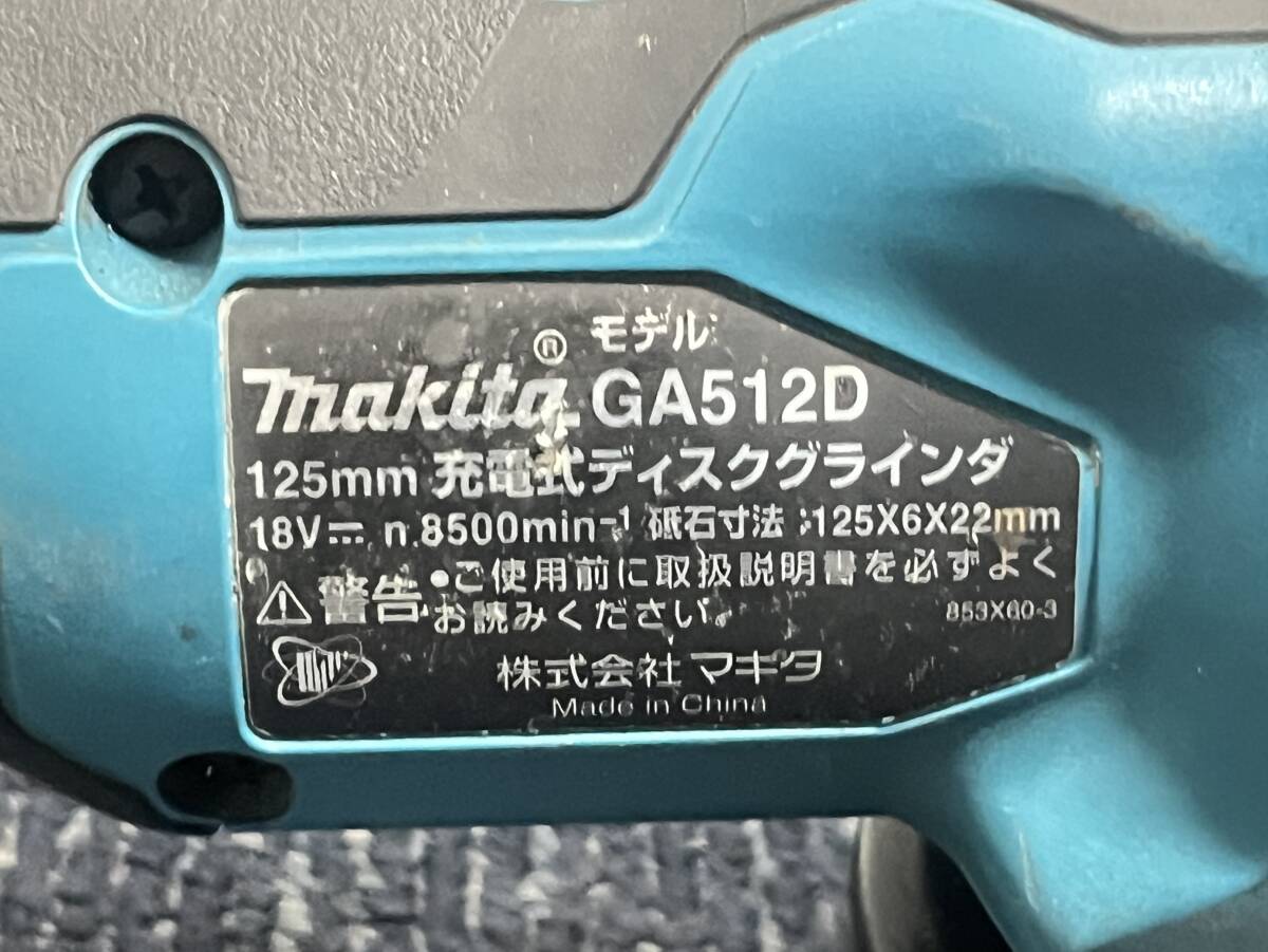 【中古品】makita マキタ 18V 125mm 充電式ディスクグラインダ GA512DZ 青/ブルー 本体のみ 研削 研磨 10907