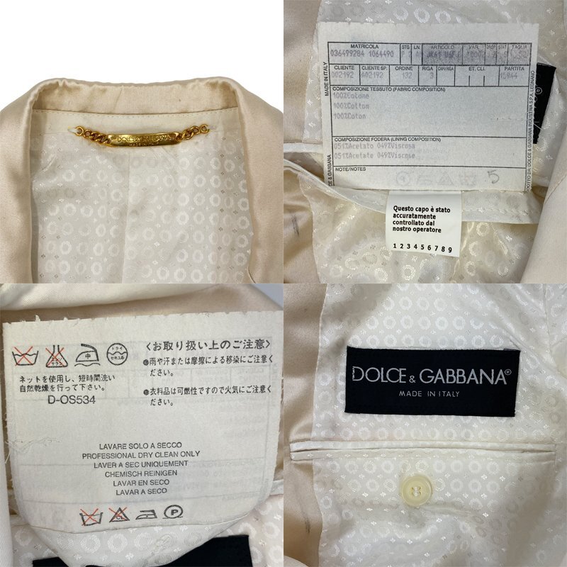 【中古B】Dolce&Gabbana ドルチェ&ガッバーナ タキシードジャケット メンズ サイズ52 ホワイト (辻屋質店A2724)** |