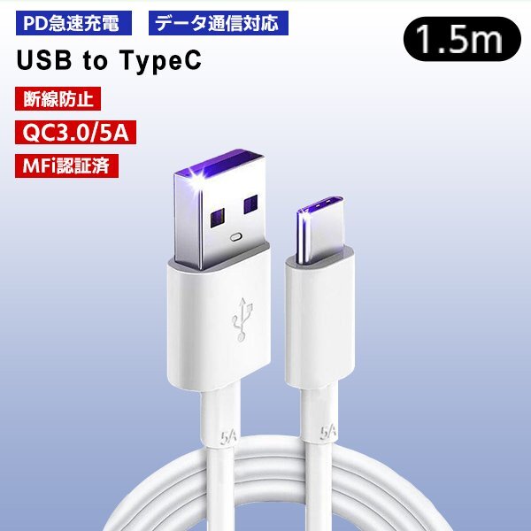 ☆USBケーブル Type-A to Type-c ケーブル 1.5m 【商品名】 USB Type-A to Type-C ケーブル 【詳細】 ◆高速充電と高速データ転送:Type-Cインターフェースで5Aの高速充電対応。急いでいるときでもデバイスのバッテリーを迅速に充電可能。 ◇信頼性のある接続:堅牢なType-Cコネクタと高品質のケーブル保護が、強い耐久性と安定した接続を保ち、デバイスとの信頼性の高い接続が確保されます。 【ケーブルの長さ】 1.5m 【仕様】 5A急速充電/データ転送対応 40w SUPERCHARGE、FPC、QC2.0/QC3.0/QC4.0 ( iPhone 充電ケーブル ライトニング USB 3.0 Lightning 充電コード iPad 充電ケーブル モバイルアクセサリー ホワイト 白 断線防止 スマートチップ搭載 5A ) ※非対応だった際の交換・返品は承ることができませんので予めご了承ください。 |