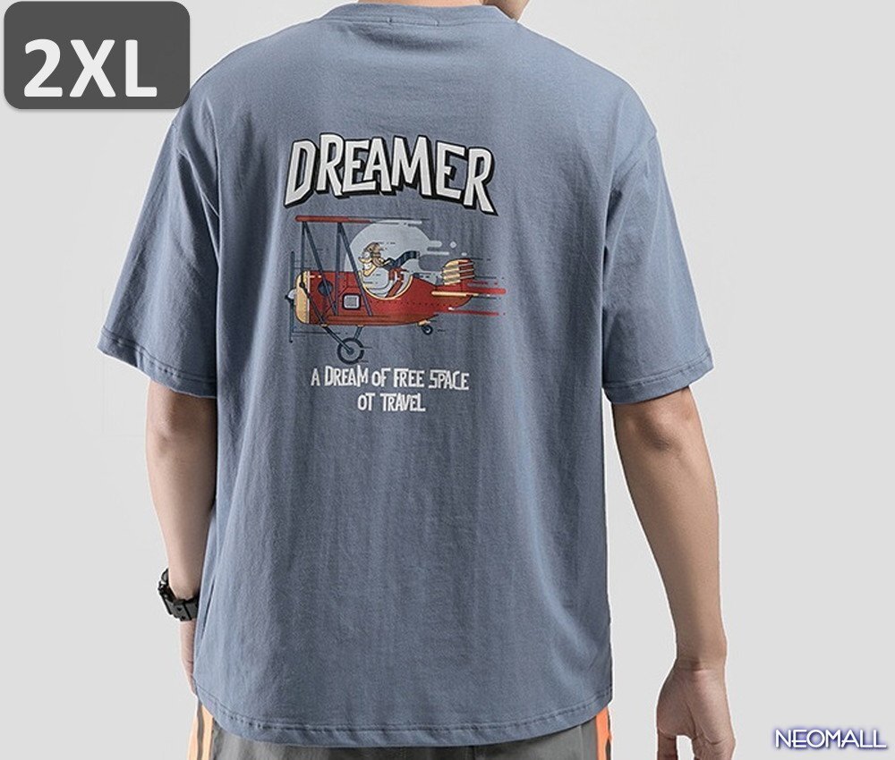 人気商品 ☆ 丸首 半袖 Tシャツ【468】 ブルー 2XLサイズ トップス シャツ シンプル イラスト デザイン 春夏