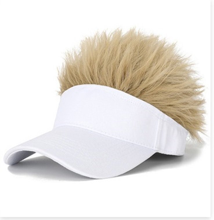 ウィッグ付サンバイザー 白帽子 ヘアカラーゴールド カツラ ウィッグヘア 髪の毛付き ウィッグ付き アウトドア スポー ゴルフ n544