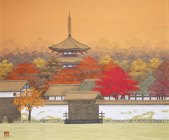 ■船橋穏行■ 【当麻錦秋】 日本画 10号 落款 印章 共シール有り 真作保証有り