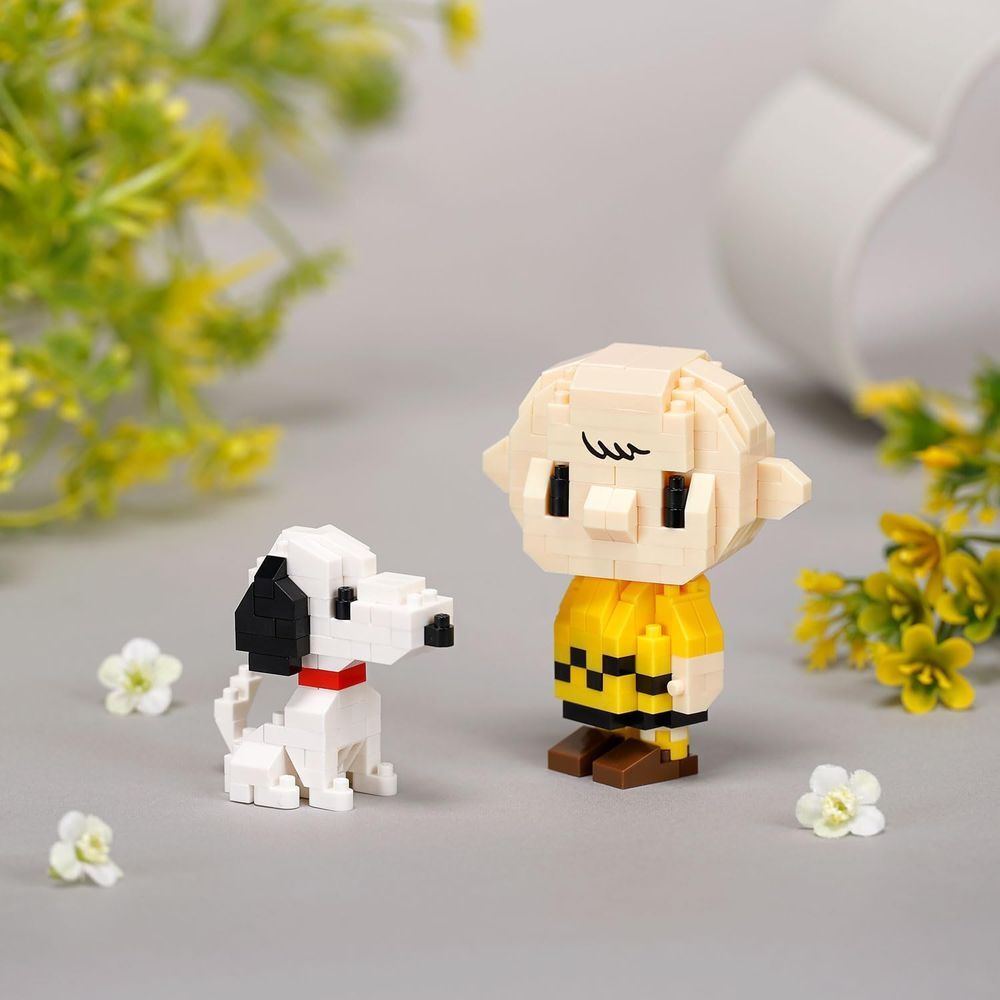 ■1950年代のチャーリー・ブラウンとスヌーピーのイラストをナノブロックで再現。