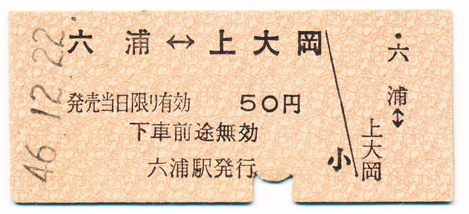 京浜急行電鉄 六浦駅発行 相互式常備片道乗車券 六浦←→上大岡 です。