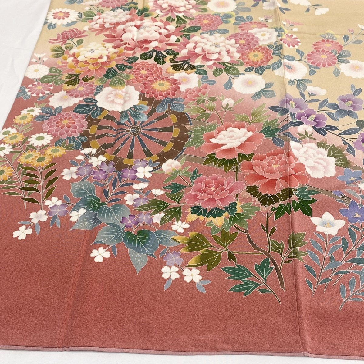 着物月花 作家物 手描き友禅 花車文様 振袖 正絹 共八掛 パールトーン加工 ki6695