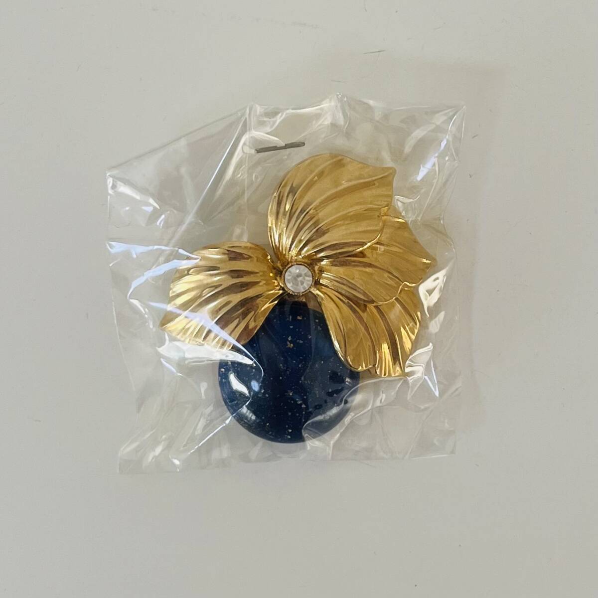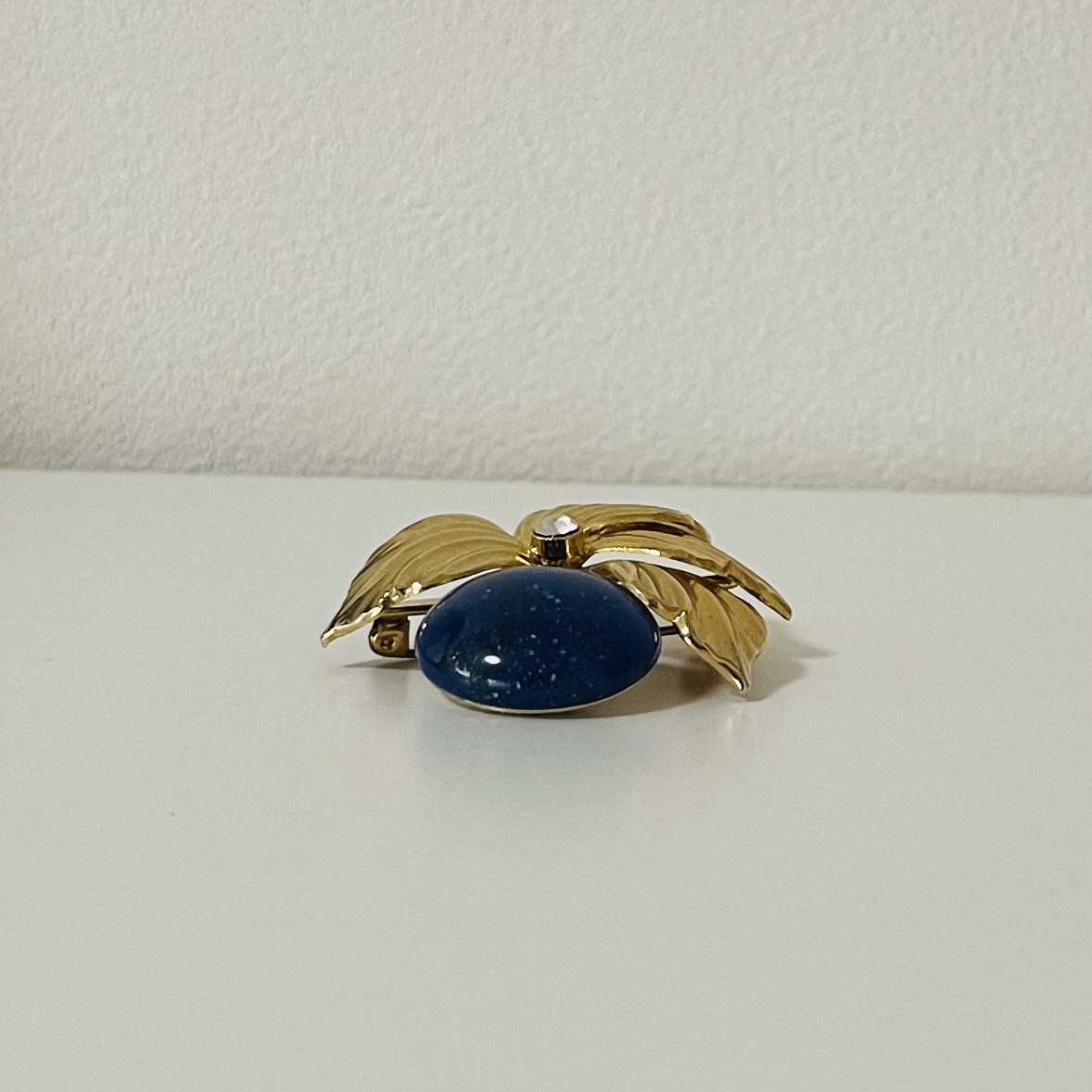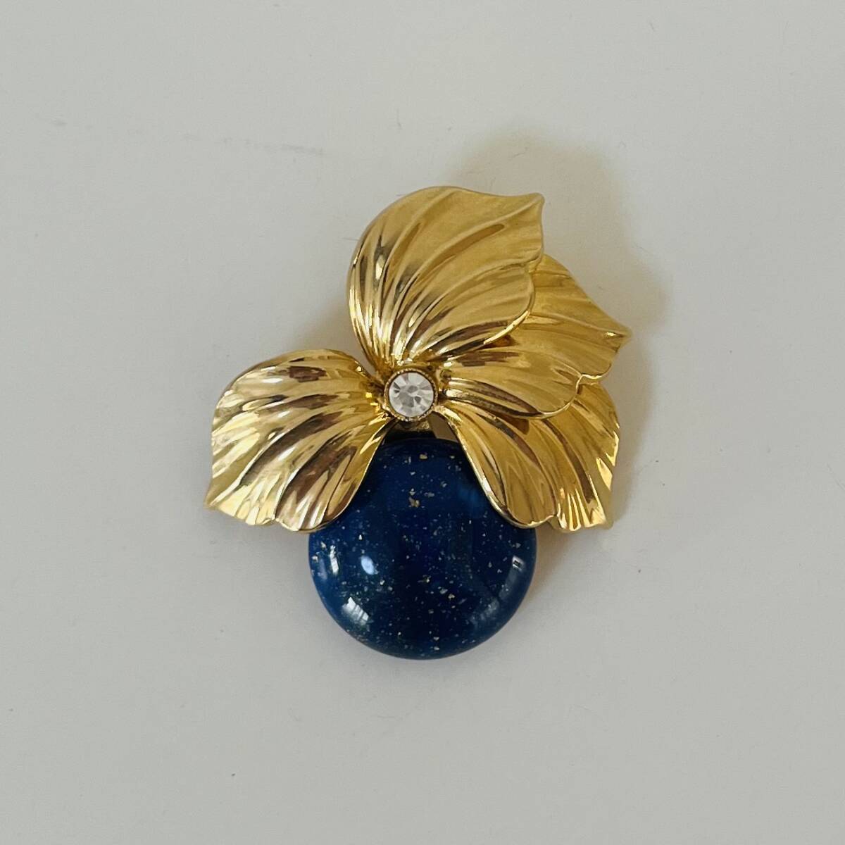 736 アンティーク ビンテージ コスチュームアクセサリー ブローチ 未使用保管品! ゴールドカラー 石 丸 海外製