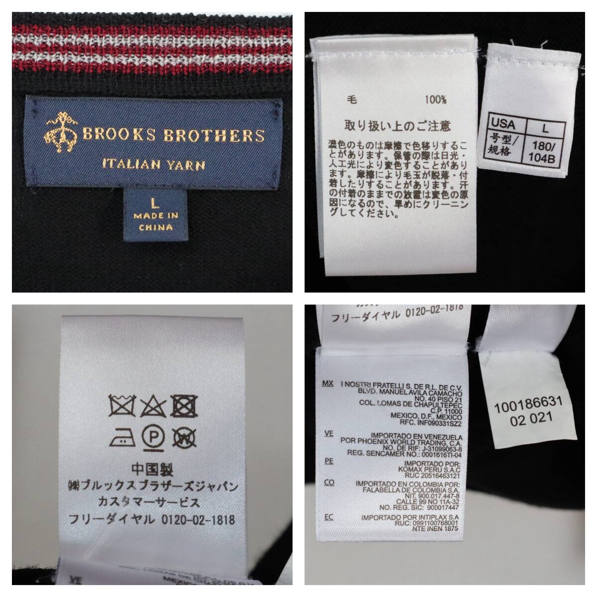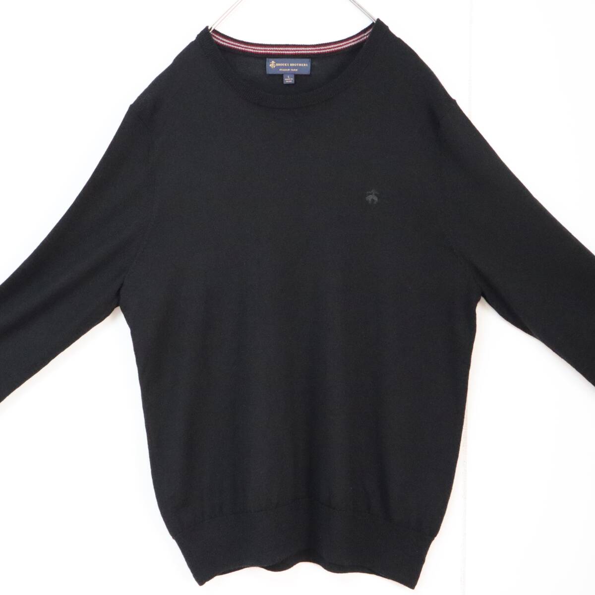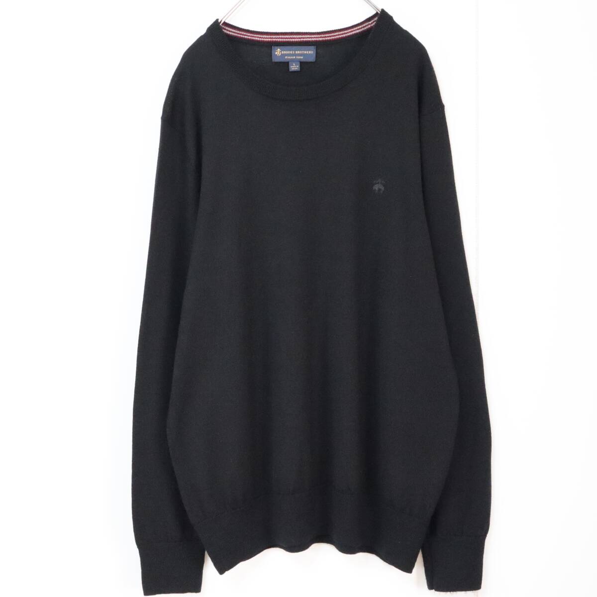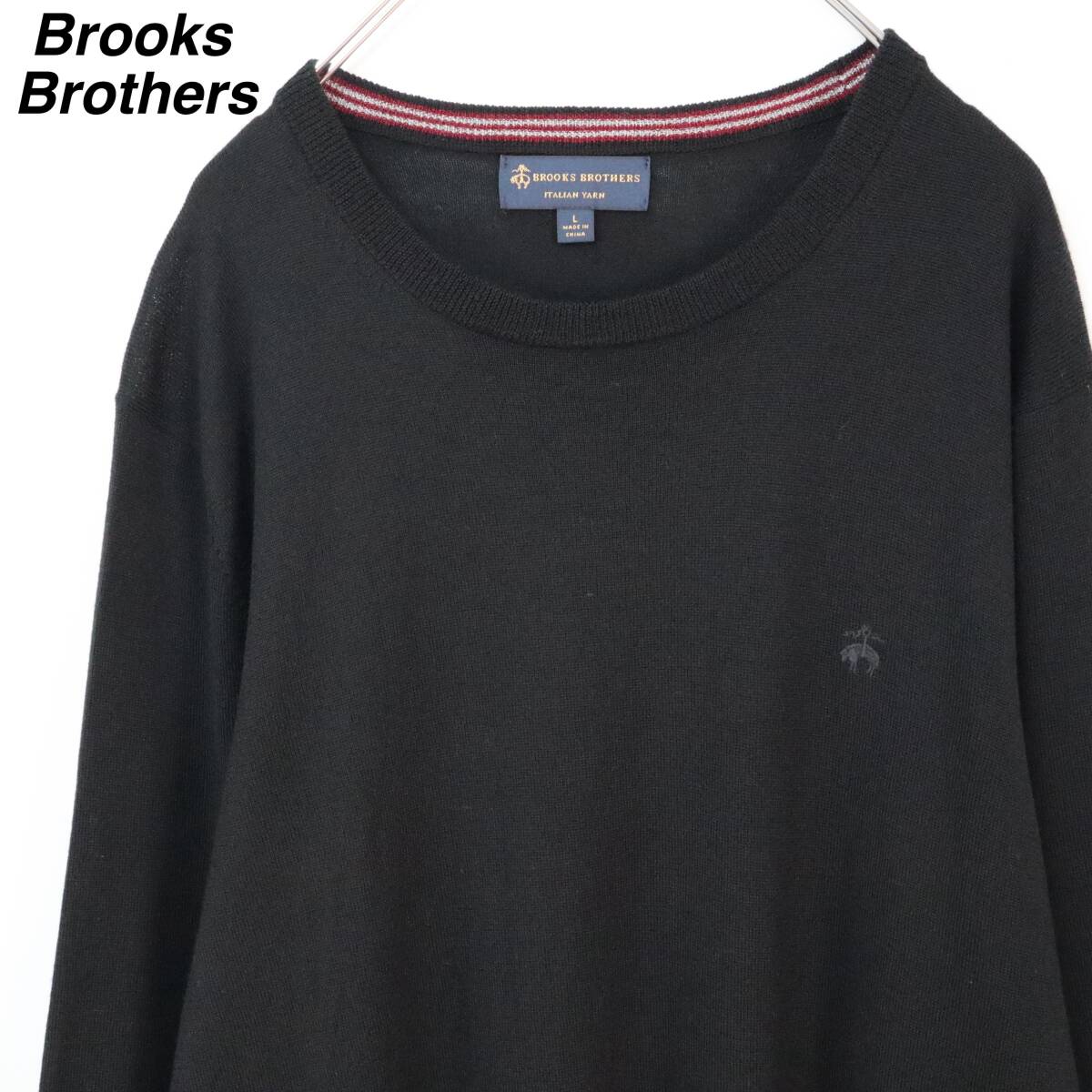【イタリアンヤーン】ブルックスブラザーズ ニット ウール 刺繍ロゴ Lサイズ 黒