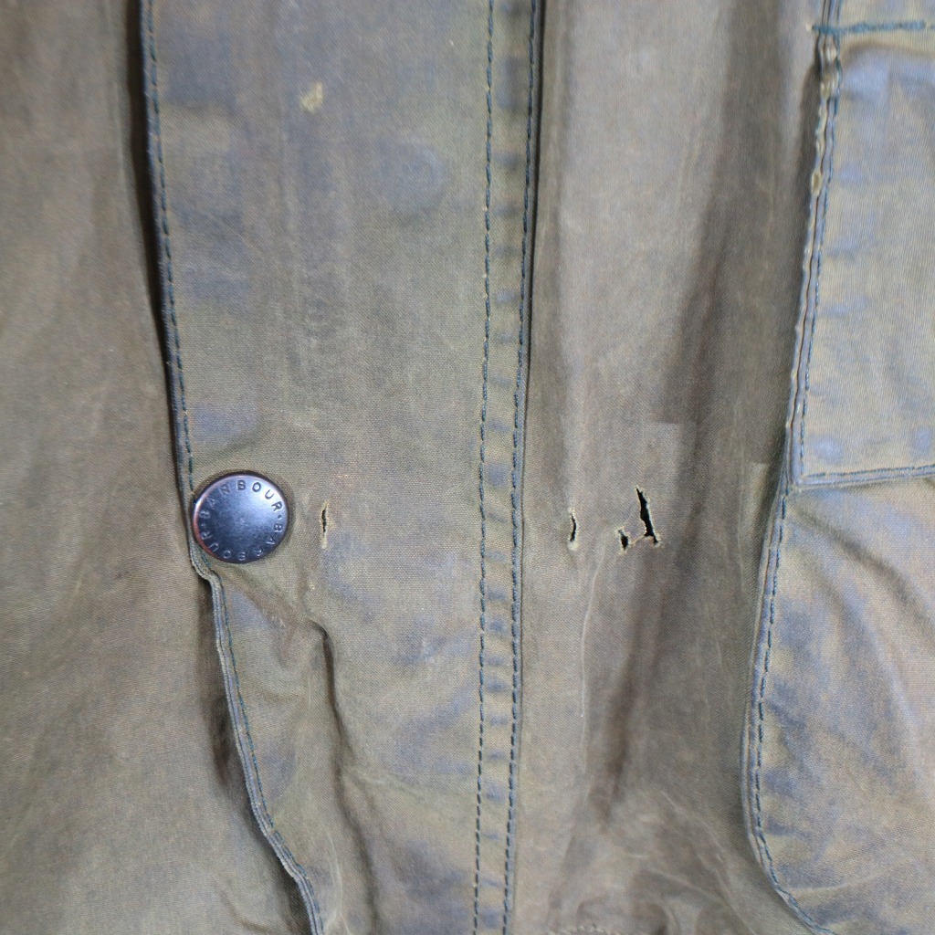 | 【商品管理番号】 O8429 【ブランド】 Barbour/バブアー 【サイズ】 C46 117CM 【実寸サイズ】 着丈:約71cm 身幅:約65cm 裄丈:約83cm 袖下丈:約49cm 【主な素材】 表地 : コットン 【色】 カーキ 【仕様】 90年代 ワーク、ユーロ、ヨーロッパ古着 BEDALE ビデイル 【状態】 汚れ:袖、背中 キズ:袖 破れ:袖、腹部 特記事項:色褪せ フード欠損 | |||