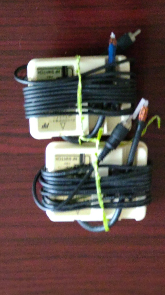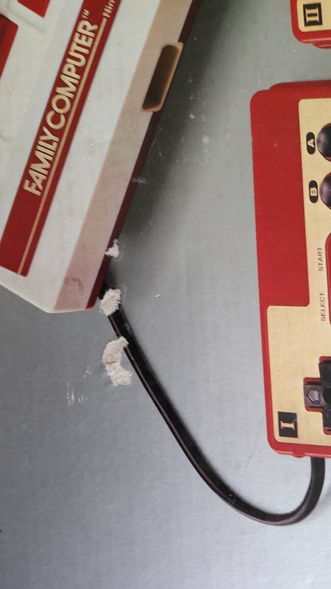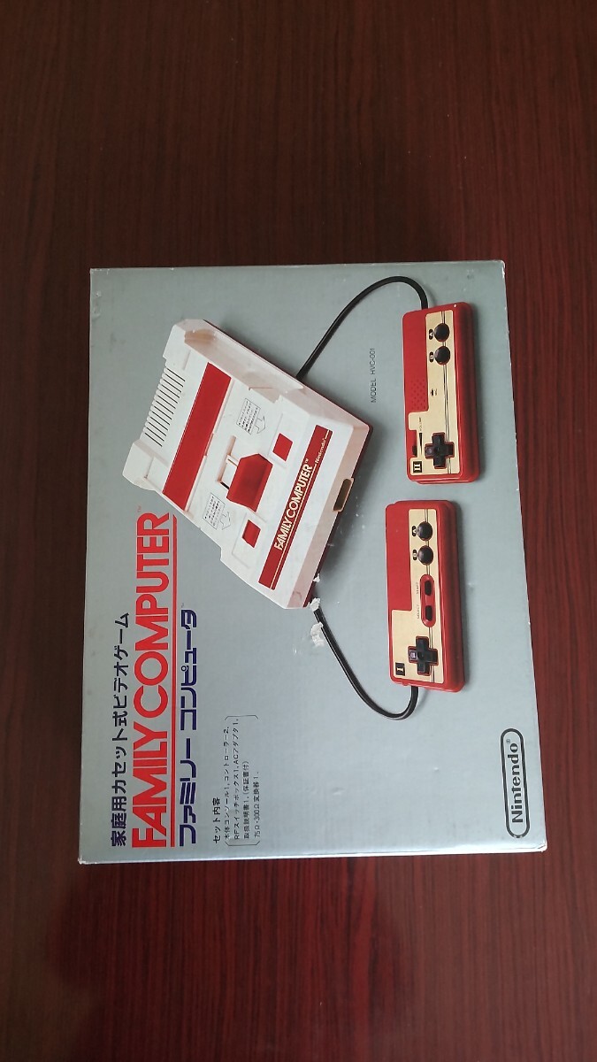 古いファミコン用の箱とRFスイッチです。汚れや凹みやテープ跡や傷みが有ります。