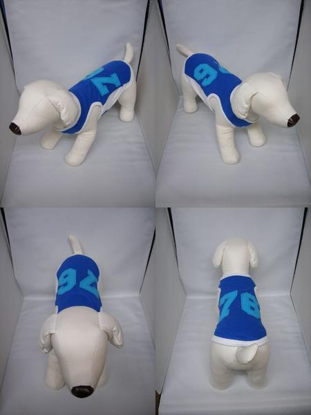 色:ブルー サイドメッシュ加工タンクトップです。メッシュ加工ですから暑い夏でも大丈夫。ワンちゃんは意外とクーラーが苦手です。お家の中にいるワンちゃんには特にお洋服をお着せになることをお勧めします。(Sサイズ):胴回り(一番太い部分の胴回り)30センチ 首周り(首の付け根周り)20センチ着丈(洋服の長さ)20センチ