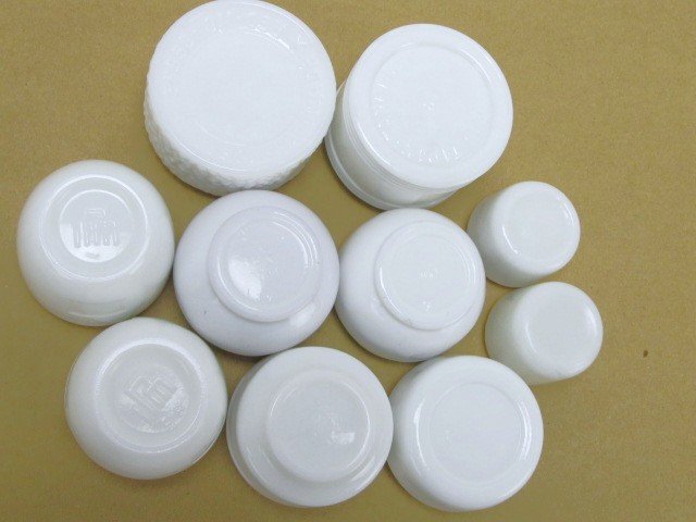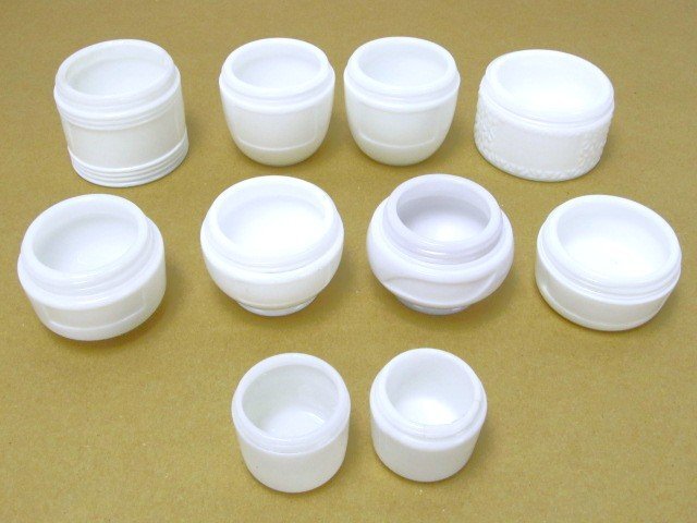 当時物 レトロ瓶 化粧瓶 白 乳白色 10個セット クリーム瓶 高さ3~5㎝程 JUJU TANCHO  です。