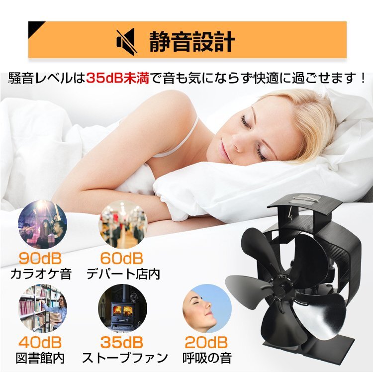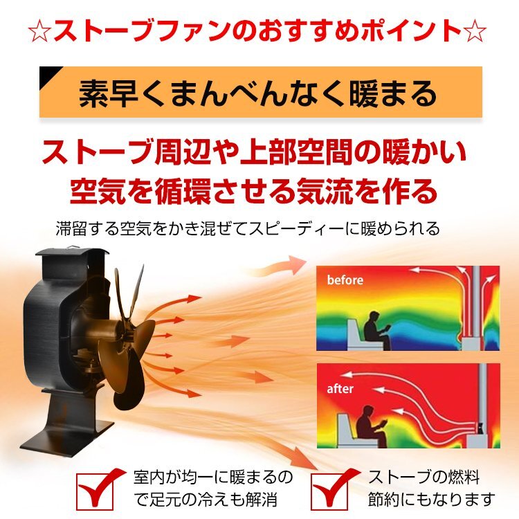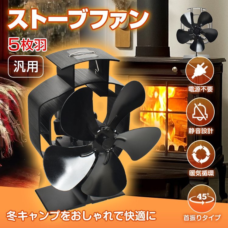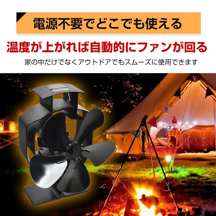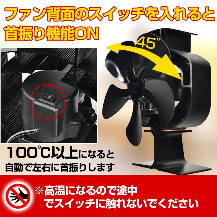 送料無料 ストーブファン 首振り 5枚 エコファン 電源不要 静音 省エネ 室内 空気循環 温風 暖炉 暖房 防寒 火力 熱炉ファン 焚火 od580
