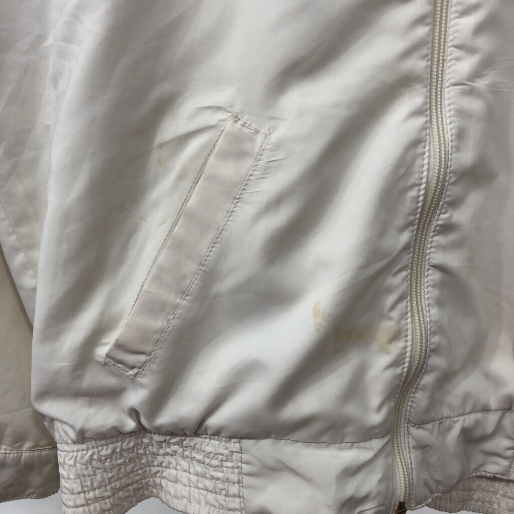 | 【商品管理番号】 Q7191 【ブランド】 adidas/アディダス 【サイズ】 48 【実寸サイズ】 肩幅:約62cm 着丈:約66cm 身幅:約60cm 袖丈:約52cm 【主な素材】 表地 : ナイロン 裏地 : 13791 【色】 ホワイト 【仕様】 80年代 スポーツ 55202 【状態】 汚れ:肩、袖、脇、胸、背中、腹部裏地 特記事項:使用感あり 【付属品】 裏地パイル | |||