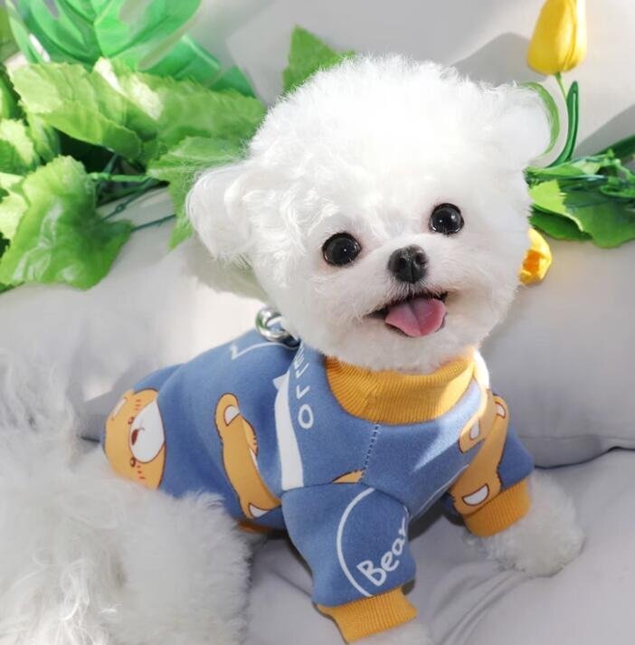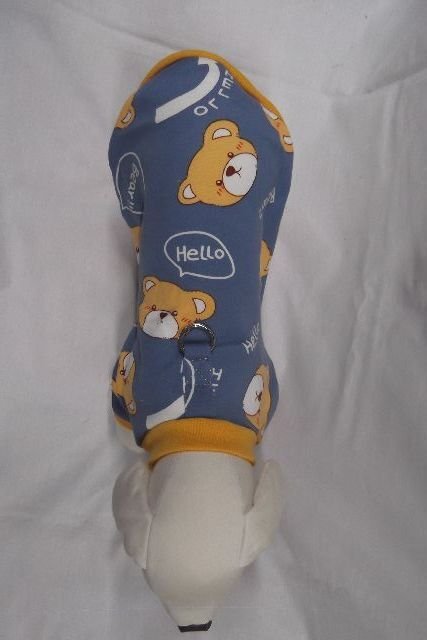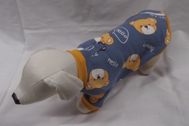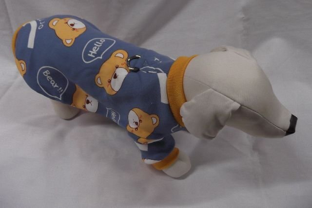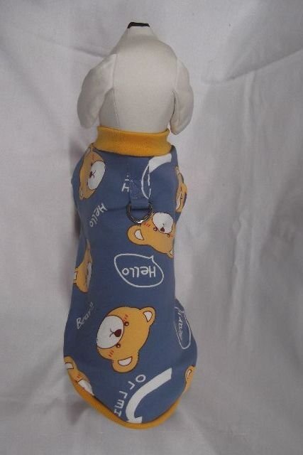 フリースでとっても軽くて暖かいクマ柄のお洋服です。背中にはリードフックが付いていますのでリードをつければそのままお散歩に行けます。