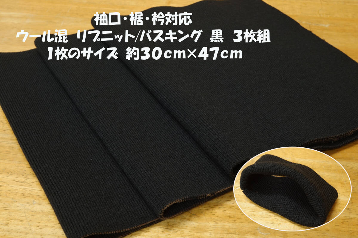 衿・袖口・裾対応のリブニット生地(バスキング)のカット品、3枚組での出品でございます。