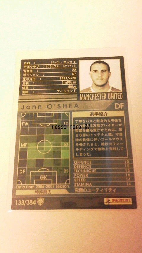 ☆WCCF2006-2007☆06-07☆133☆白☆ジョン・オシェイ☆マンチェスター・ユナイテッド☆John O'Shea☆Manchester United☆