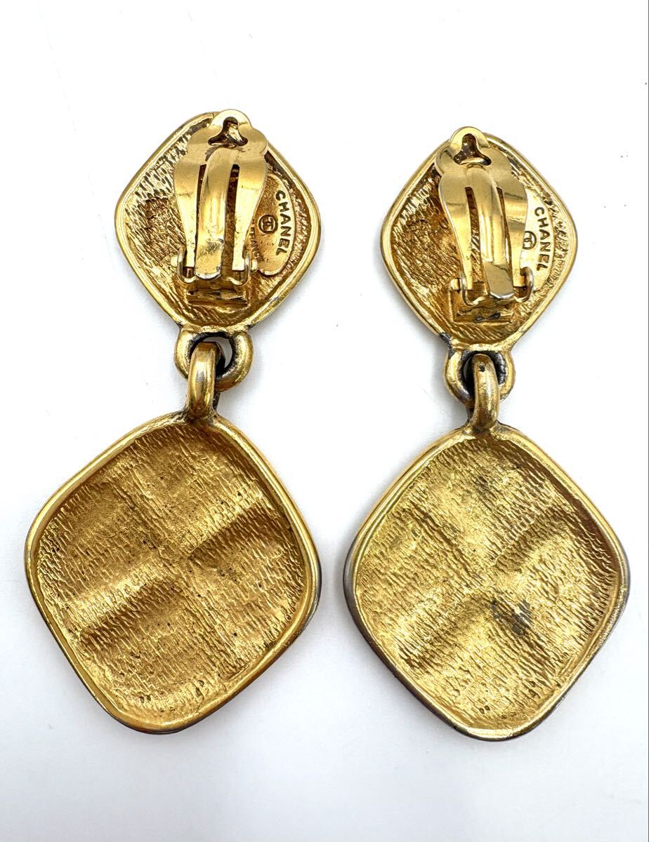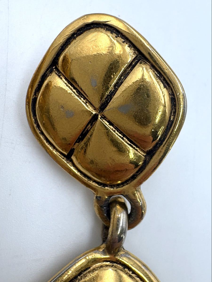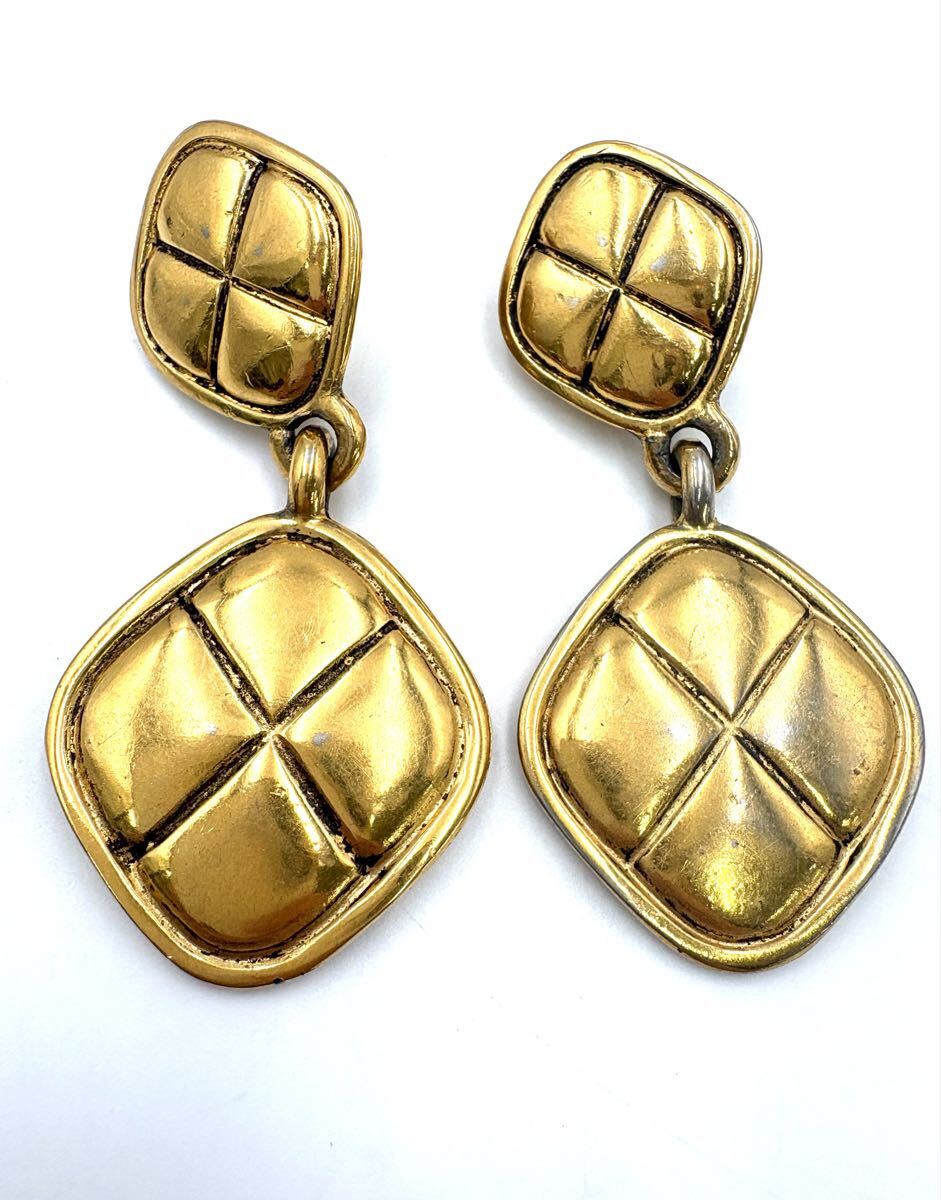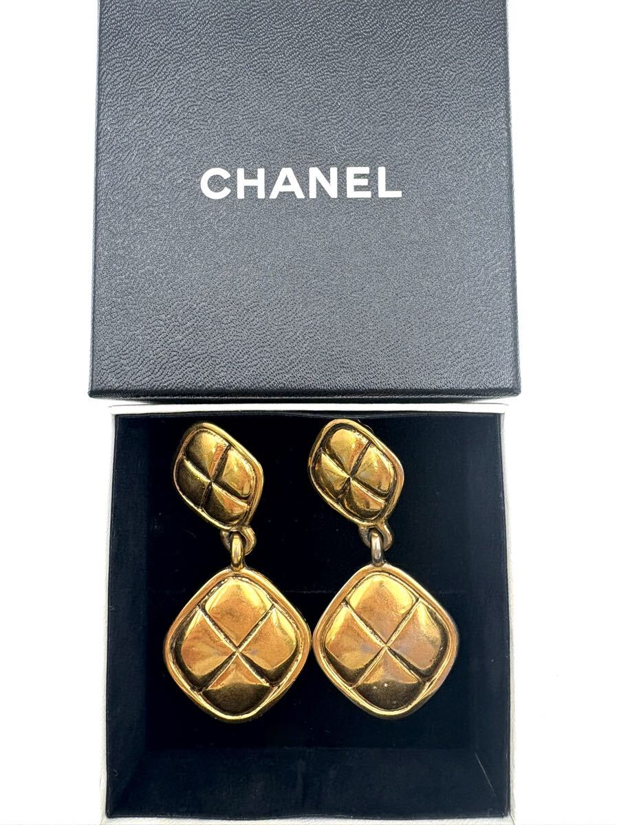 商品名 : CHANEL シャネル ヴィンテージ マトラッセ ひし形 スクエア ゴールド メッキ イヤリング 箱付き