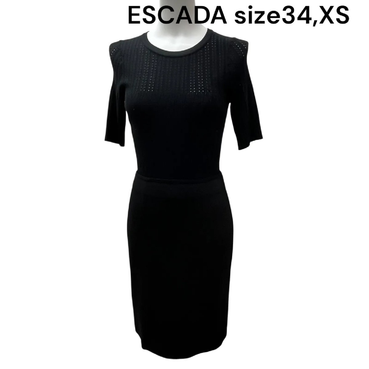 エスカーダ ESCADA ワンピース サマーニットドッキング ブラック 34、XS レディース S5S726