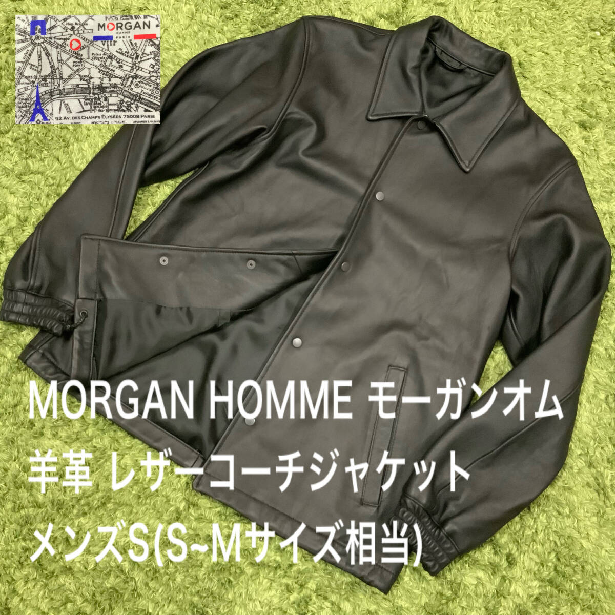 本革 羊革 MORGAN HOMME モーガンオム レザーコーチジャケット レザージャケット ブラック メンズS(S~M相当)