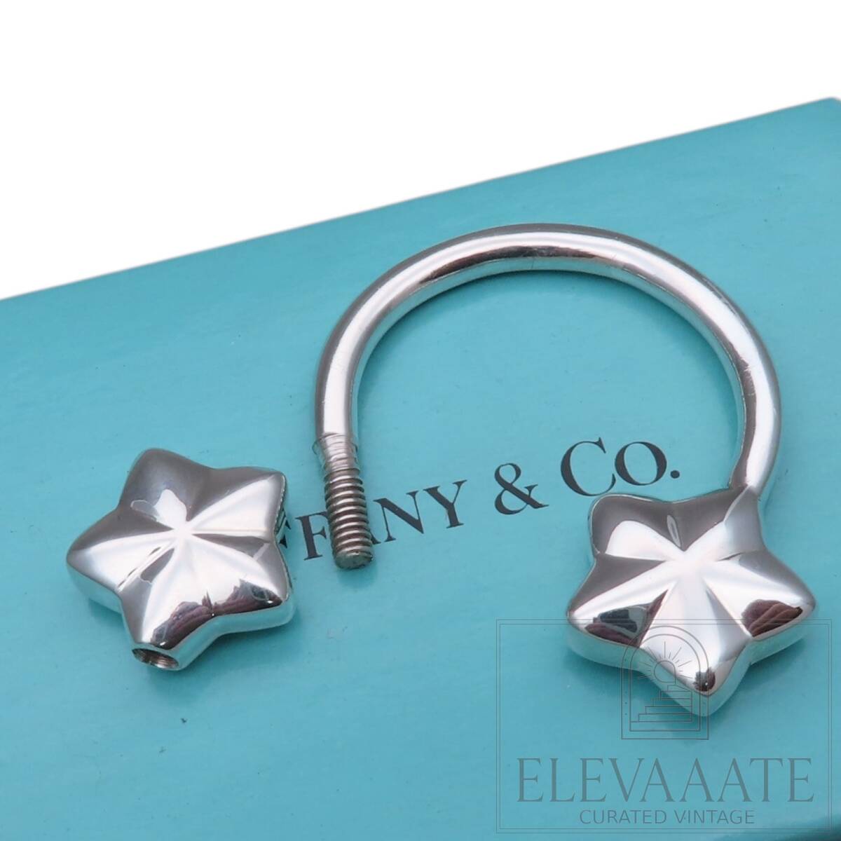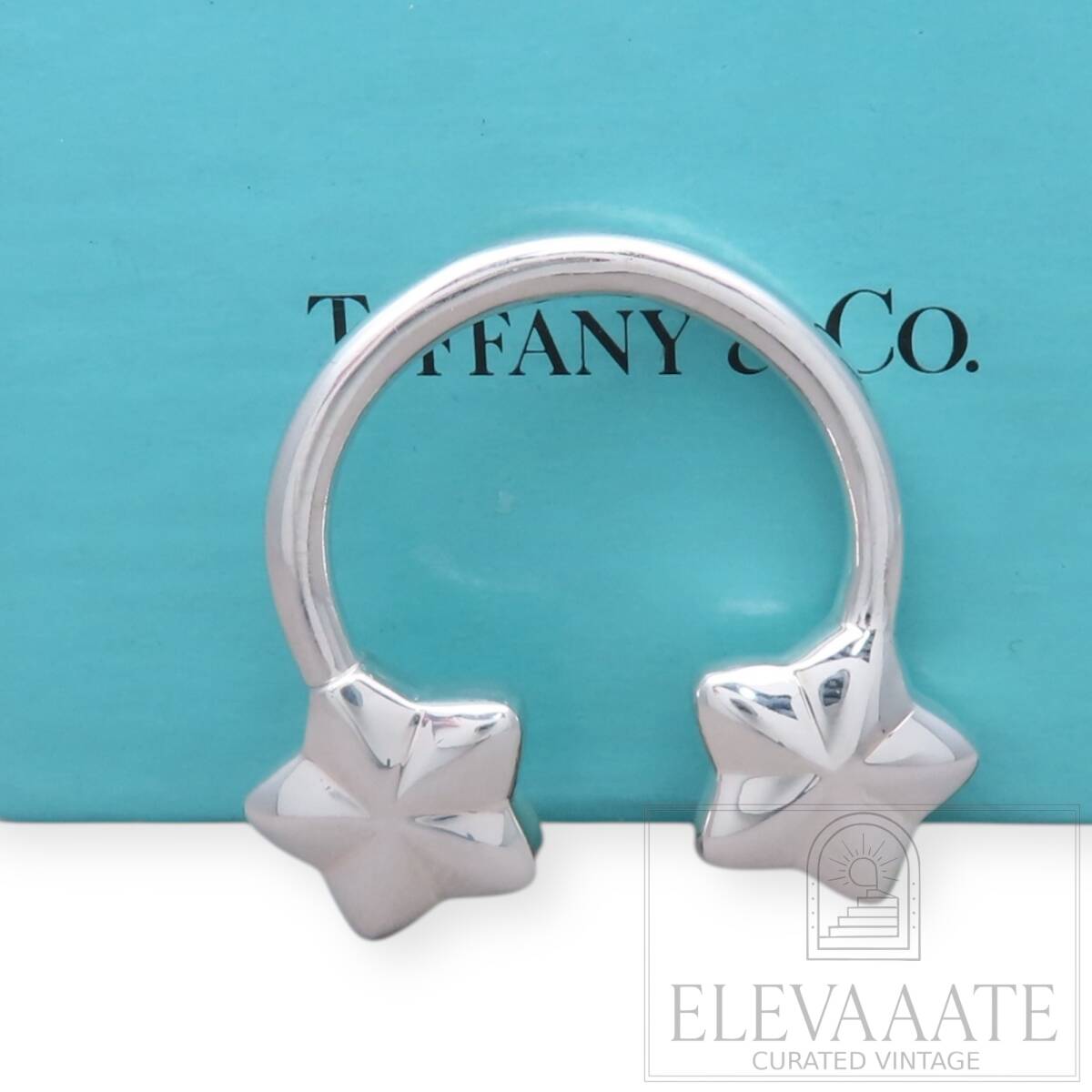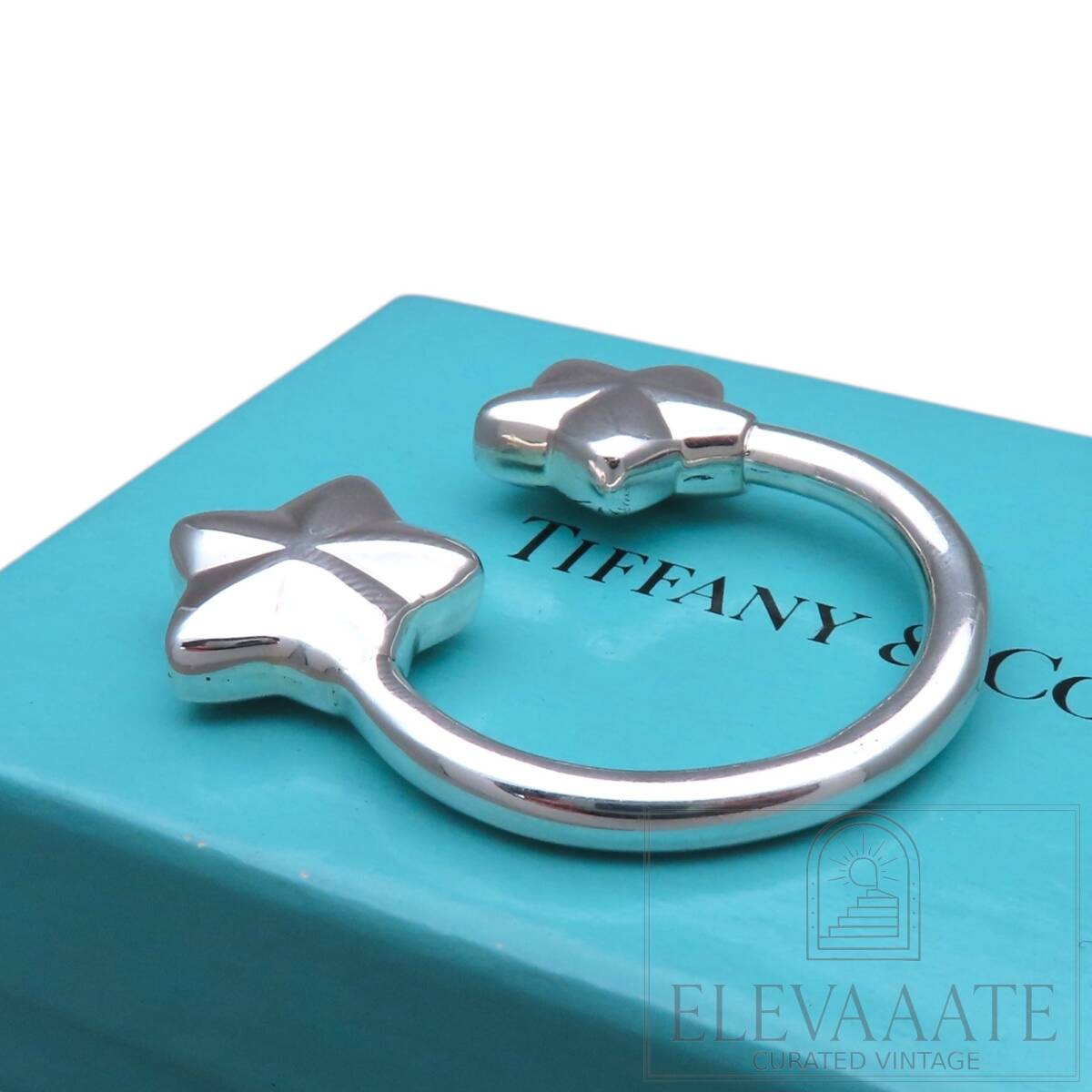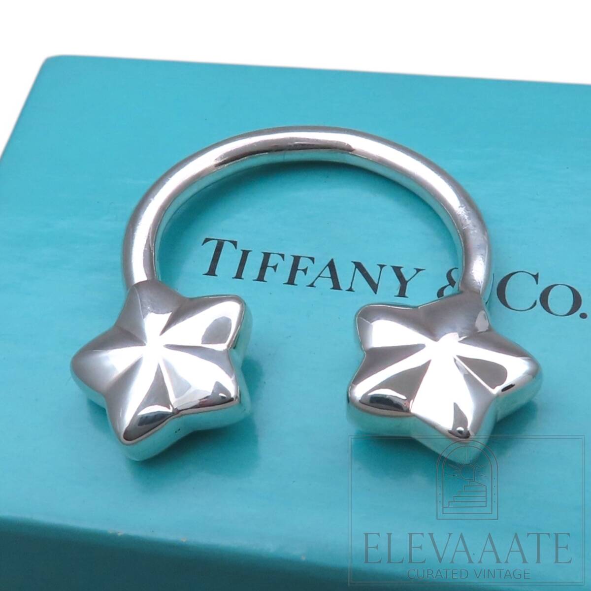 希少 美品 Tiffany&Co. ヴィンテージ ティファニー ダブル スター シルバー キーリング SV925 キーホルダー TO552