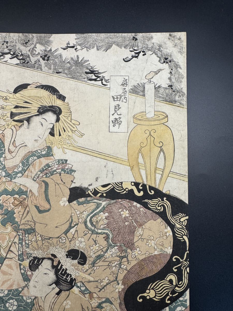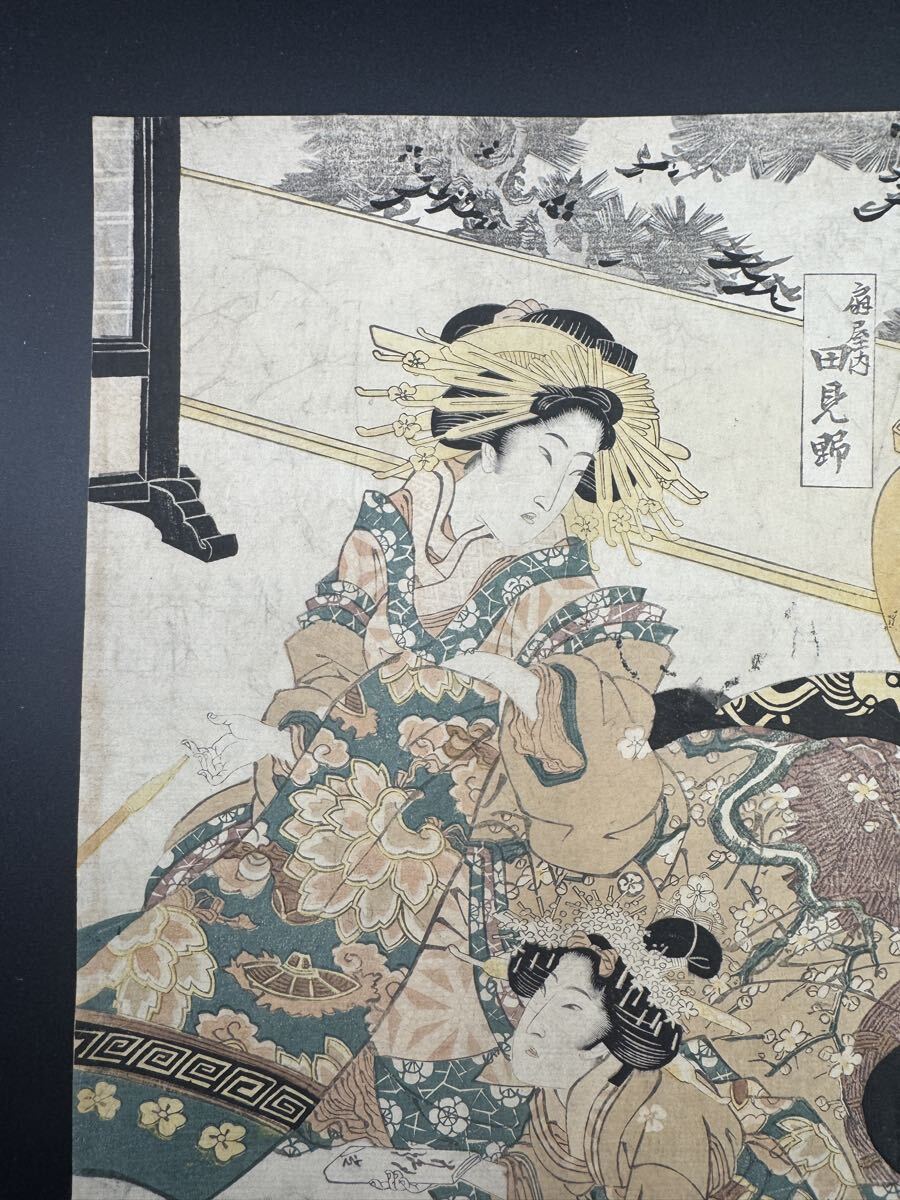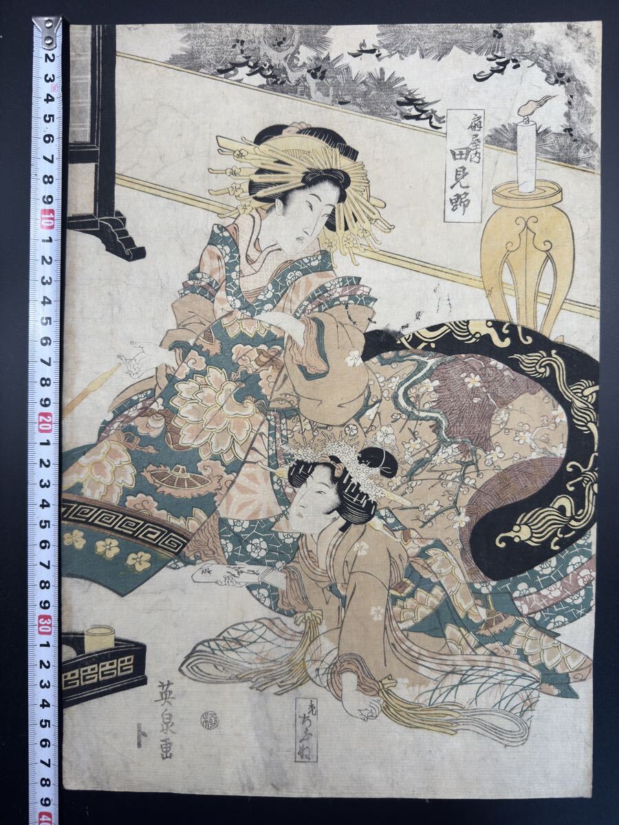 花魁!江戸期/真作 渓斎英泉「扇屋内 田見野」本物浮世絵木版画 美人画 錦絵 大判 保存良い