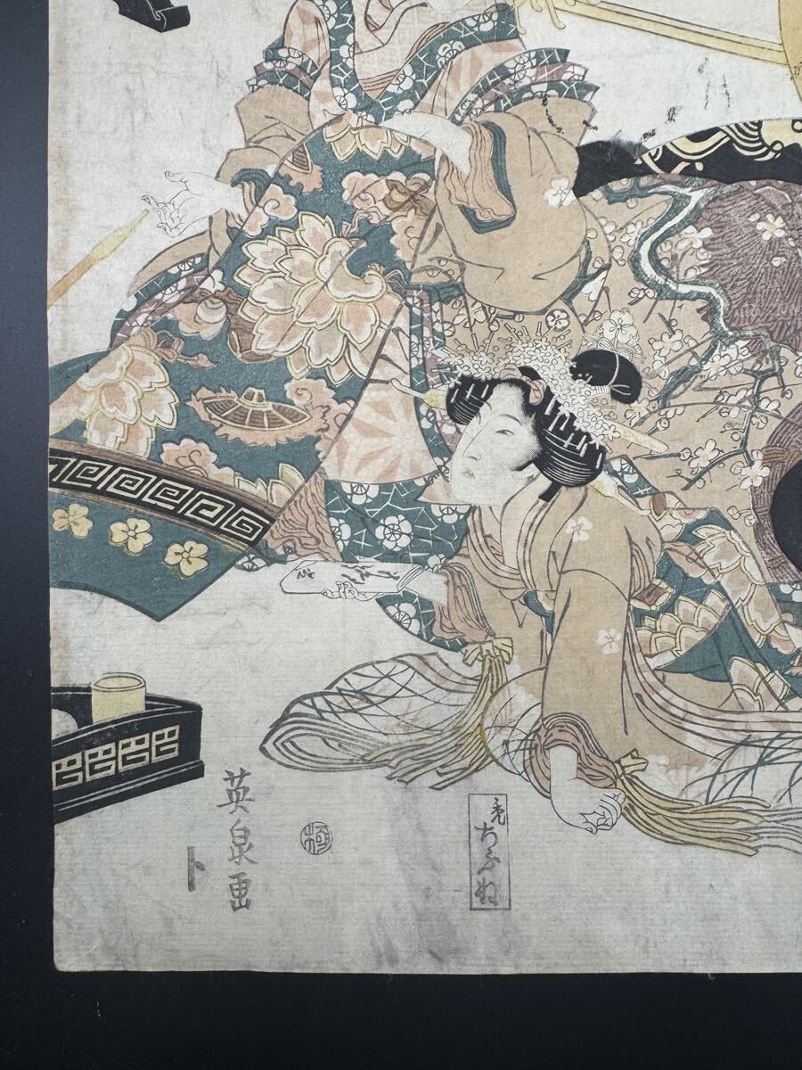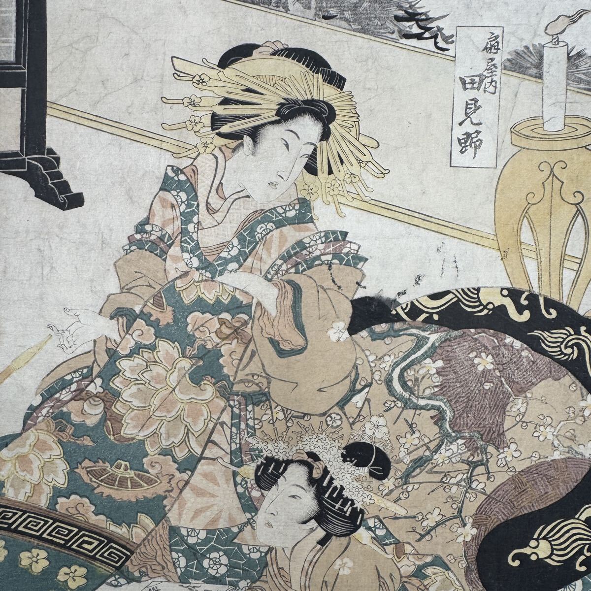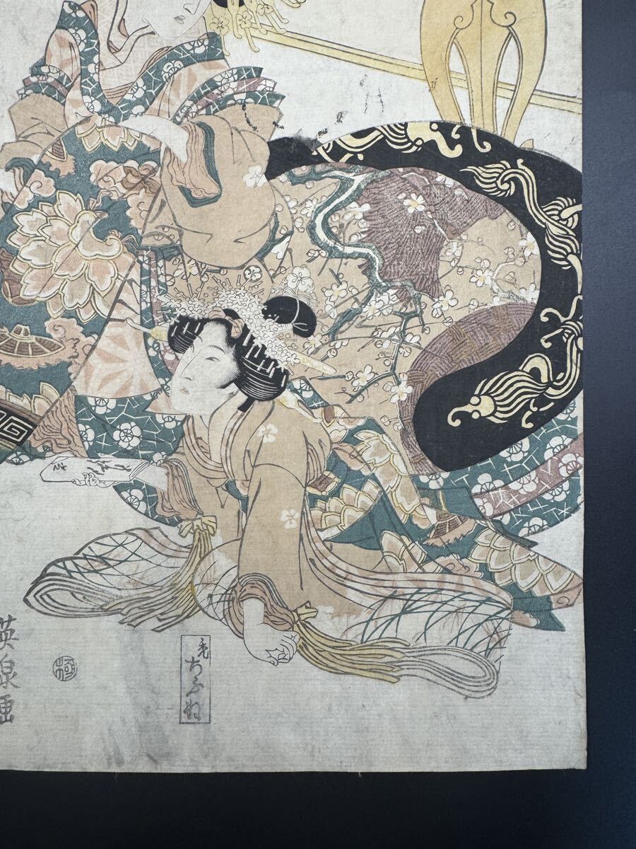 花魁!江戸期/真作 渓斎英泉「扇屋内 田見野」本物浮世絵木版画 美人画 錦絵 大判 保存良い
