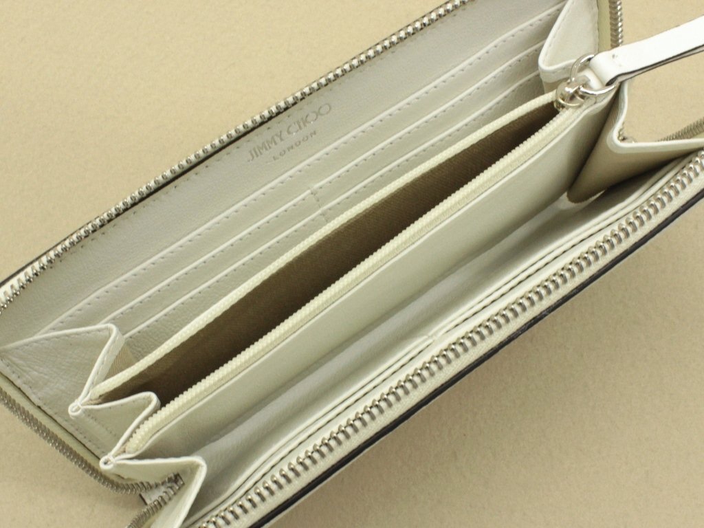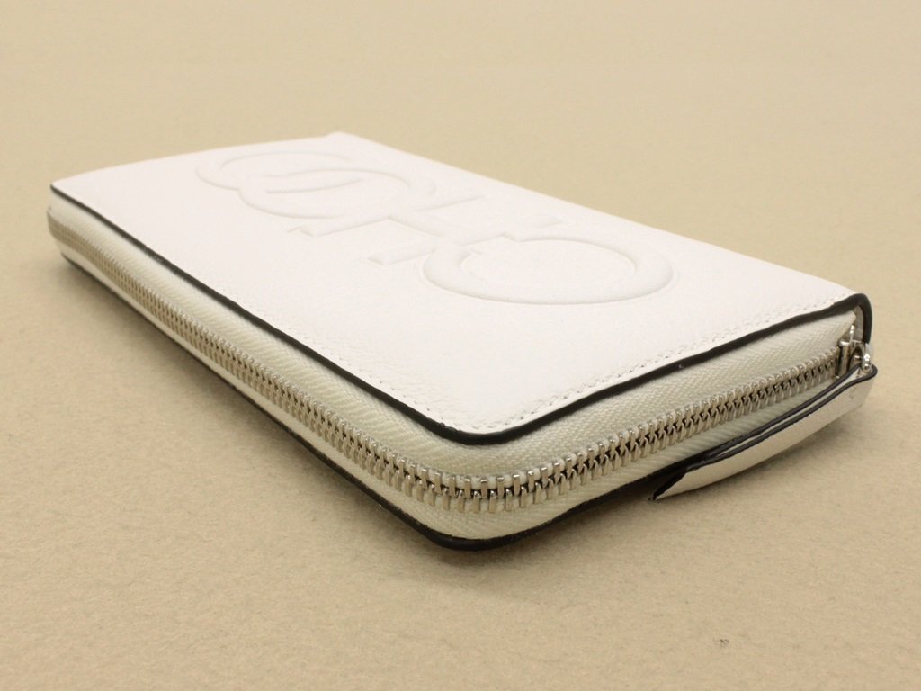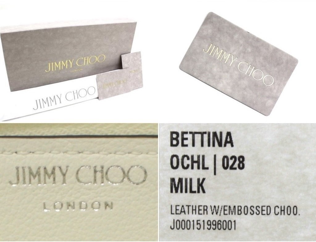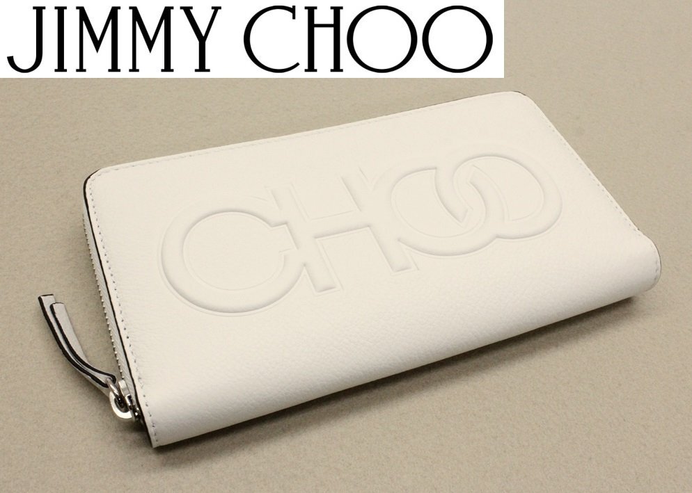 10万新品◆JIMMY CHOOジミーチュウ◆オフ白 レザーエンボスロゴラウンドジップ長財布 BETTINA