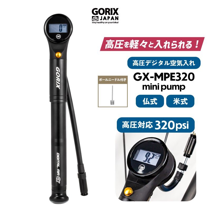 GORIX ゴリックス ミニポンプ 自転車 携帯空気入れ 高圧対応 デジタル空気圧計(ゲージ付き)ロードバイク 320pis (GX-MPE320)