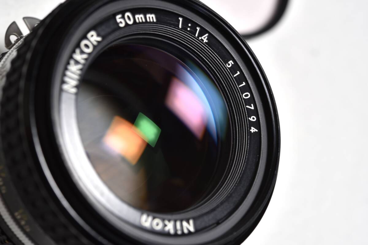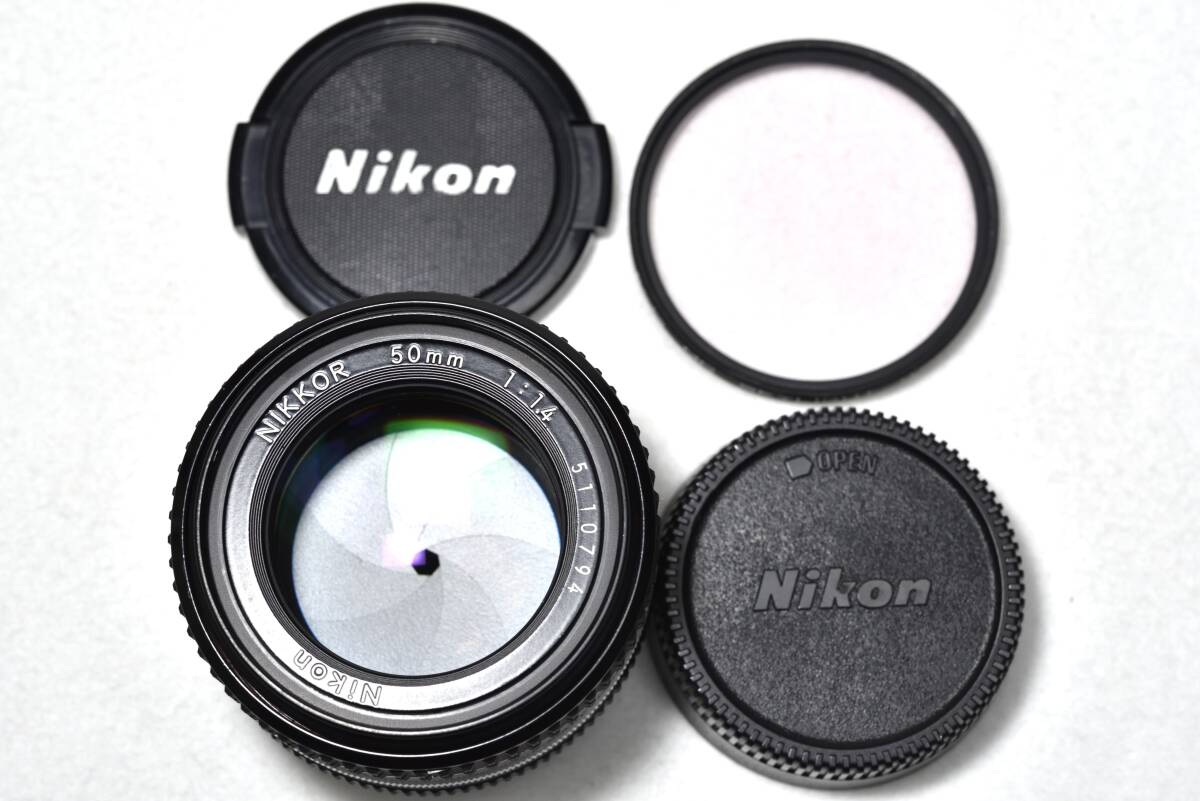 【実写画像あり】Nikon Ai‐s NIKKOR 50㎜ f1.4 定番の標準単焦点レンズ レンズフィルター、前後キャップ付きの状態良好品