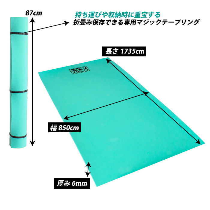 | トレーニングマットは、トレーニングをより快適サポート。 自転車のローラー台やエアロバイク、筋トレ時に床面を保護し、使用時の騒音を少なくします。 不使用時には折りたたんでコンパクトに収納できます。 ・ローラー台などのトレーニングをしている時の汗や、メンテンナンス時のチェーン汚れなどから床を保護 ・高温・低温にも強く保温性も高いEVA素材を採用 ・環境ホルモンを含まない無公害な素材だから、安心に毎日使える ・柔らかく弾力があり、ゴム的弾性に優れる ・とにかく軽い!ただの740g軽量性抜群 ・住宅用の騒音軽減 衝撃吸収、防振効果 ・劣化しにくい:耐久性に優れ、汗や紫外線を浴び続けても劣化しにくい ・多用途:室内スポーツの筋トレやヨガ、エアロバイク、3本ローラーなどなど ・きれいなチェレステ色 ・室内ローラー台向きの長さ、三本ローラーにも余裕あり使用できる ・十分の厚さ6mm ・折畳み保存できる専用マジックテープリングあり、場所取らずに保管できる。 内容 商品内容:トレーニングマット サイズ:展開サイズ:幅850cm/長さ1735cm 厚み6mm 包装サイズ約87x13x13cm 本体重量:約740g 材質:EVAゴム素材、表面滑り止め加工かけ ※注意:本製品開封した時匂いがする場合がございますが、匂いは段々消えていきます。 《ご注意》 ・商品は入荷によりキズがある場合があります。 ・ディスプレイ環境により実物と色が異なる場合が有ります。 ・入荷時期により予告無く一部仕様変更する場合が有ります。 | |