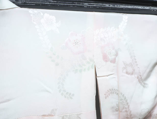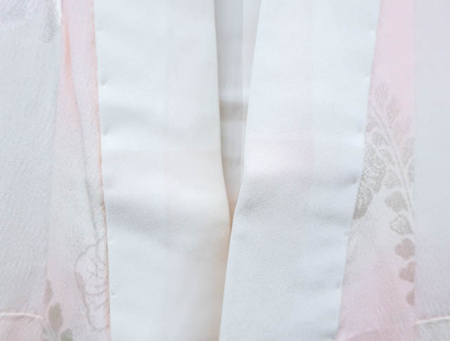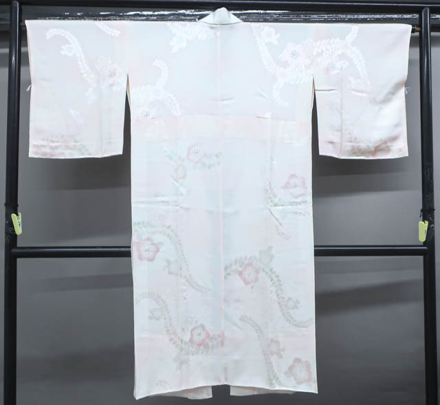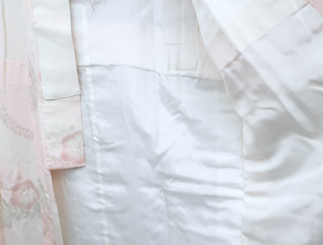 リサイクル商品ではございますが、大変良い状態のお品です。 地色は、薄ピンクです。 1枚目の画像が近いお色かと思われます。 素材は正絹です。 |
