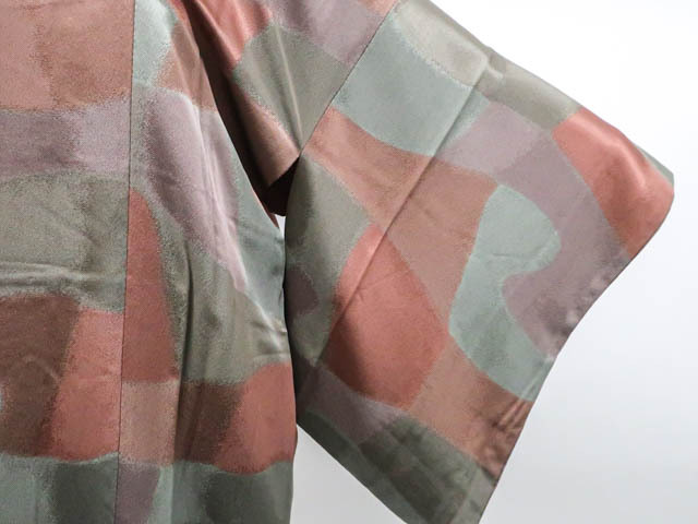 リサイクル商品ではございますが、大変良い状態のお品です。 地色は茶系・灰紫です。 1枚目の画像が近いお色かと思われます。 素材は正絹です。 |