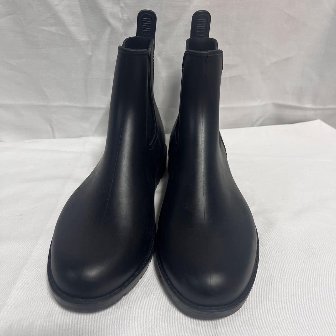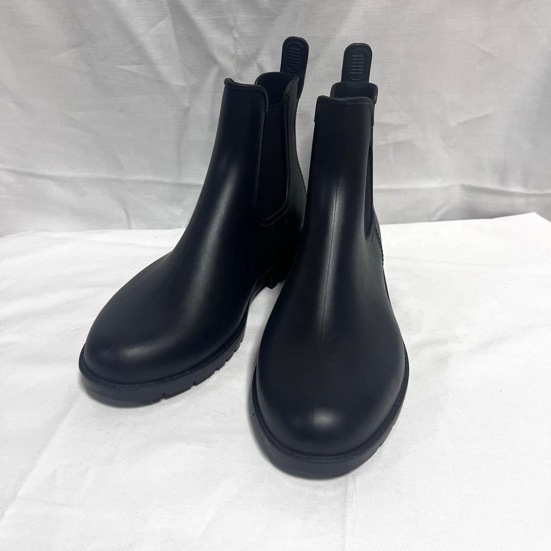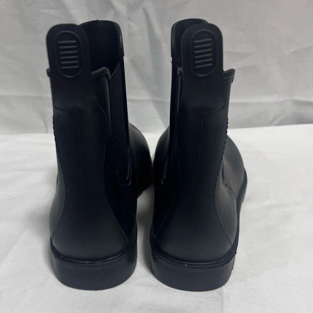 レインブーツ サイドコアブーツ 雨靴 L ブラック ショートブーツ レディース